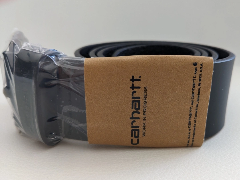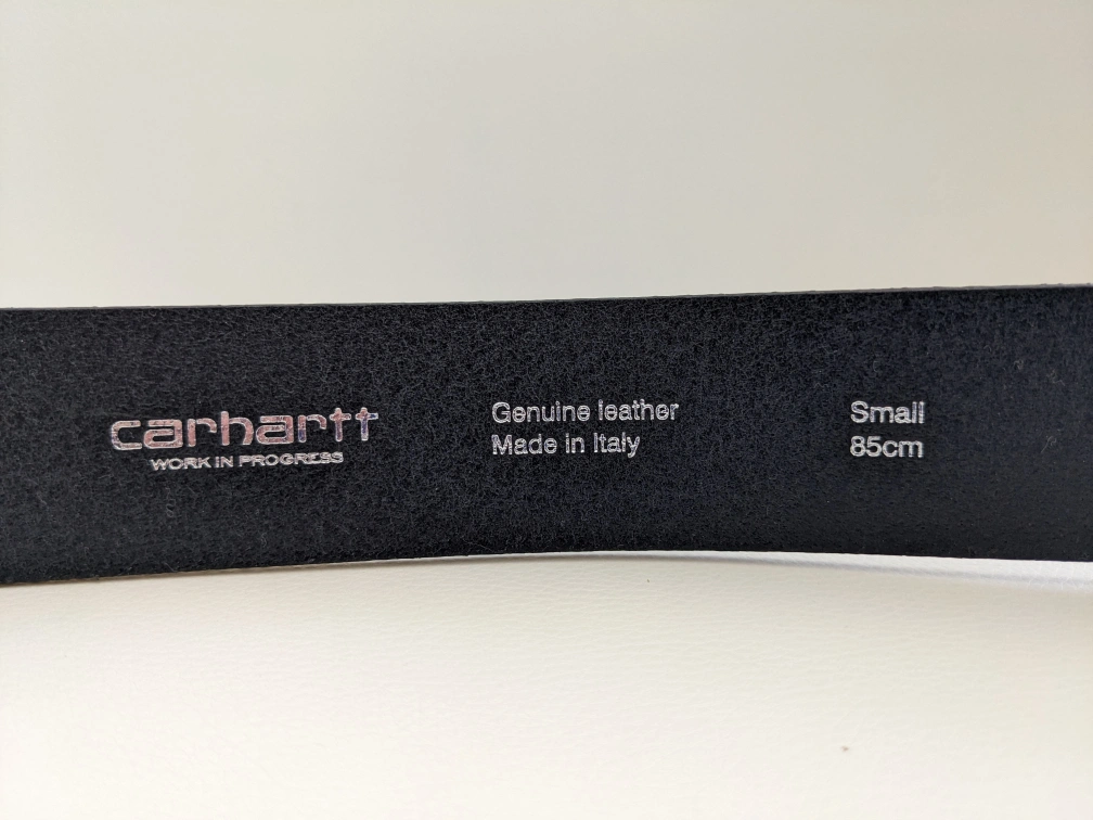 Grained leather belt in black. · Pin-buckle fastening · Logo-embossed keeper loop · W1.5" Supplier color: Black/Black Leather. Made in Italy.
