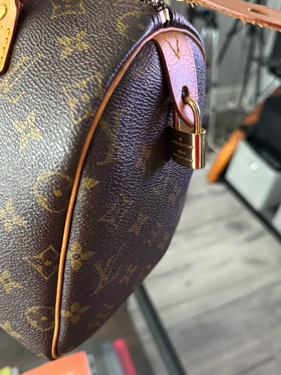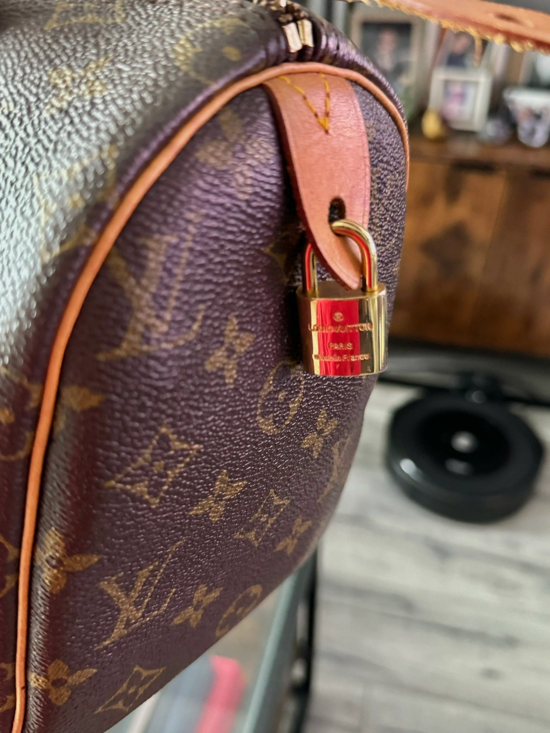 Classic Louis Vuitton Speedy 30 handbag with a gold lock and key. Japan Source No receipt and entrupy