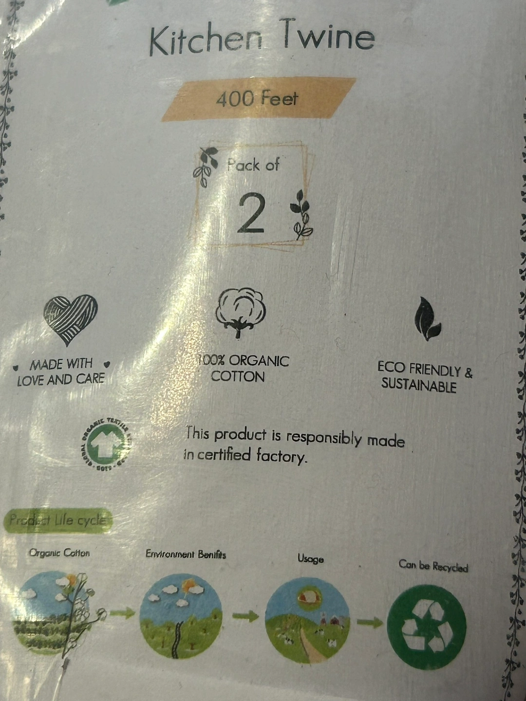 Brand new kitchen twine, two packs. Found a bunch of extra packages while unpacking. I think I had gotten them for a project but cannot remember what that was anymore! Two balls of plain kitchen twine, 400ft of twine in total. Ideal for kitchen projects, baking, or crafts.