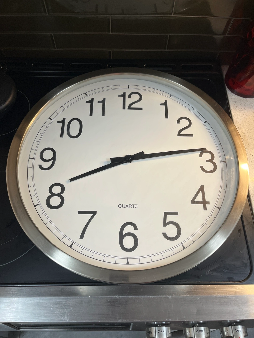 Large silver chrome quartz wall clock. The clock is in excellent working condition and looks great in any room. You can pick up by Carlton and Jarvis area