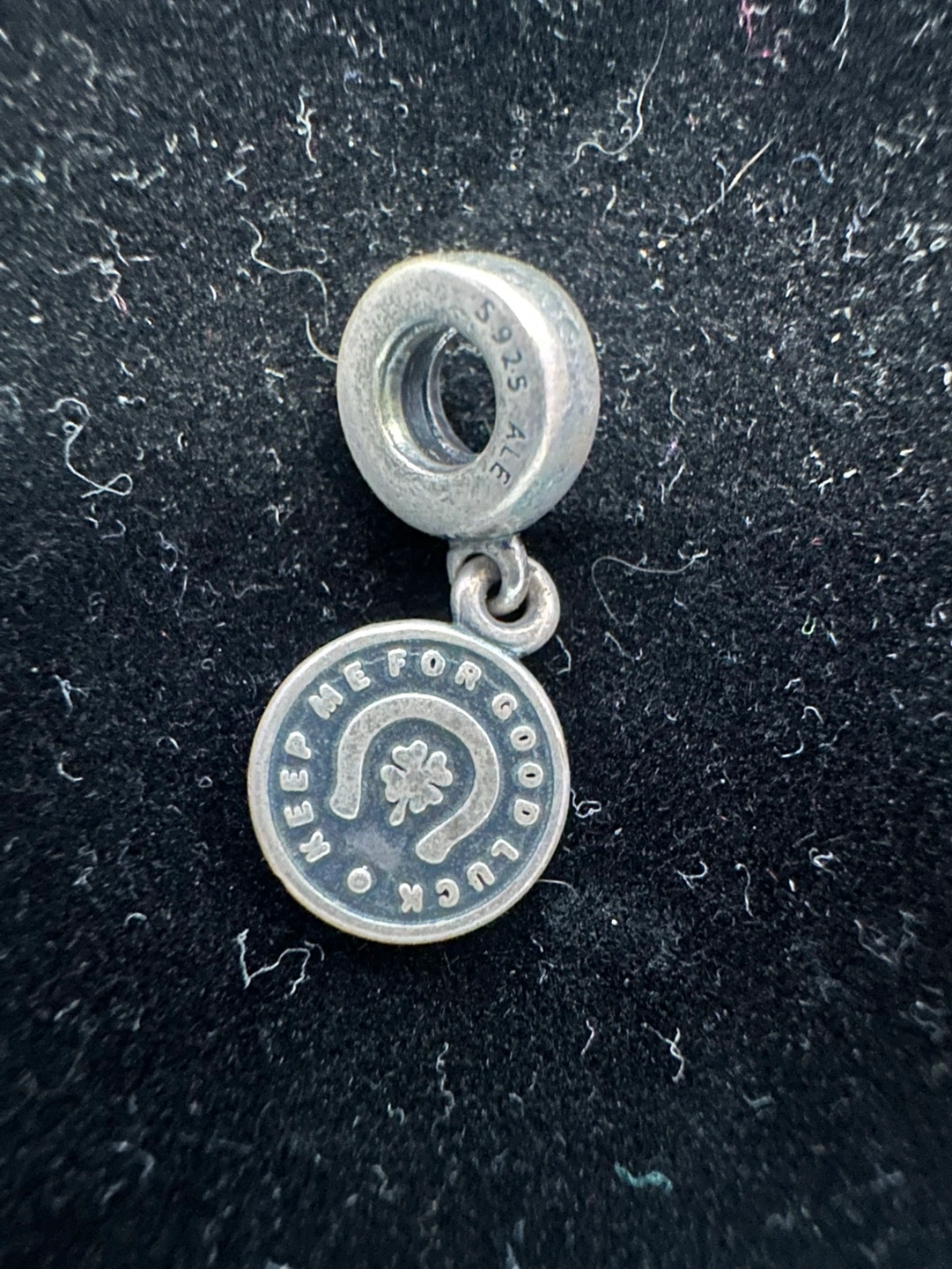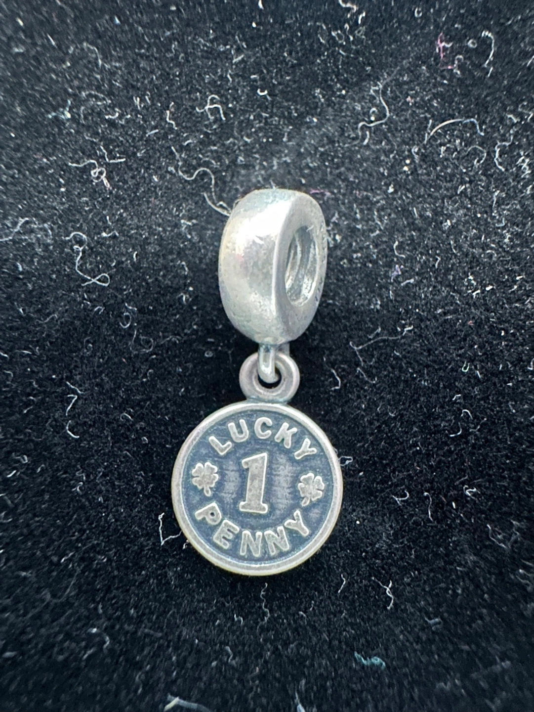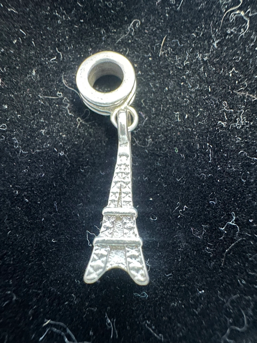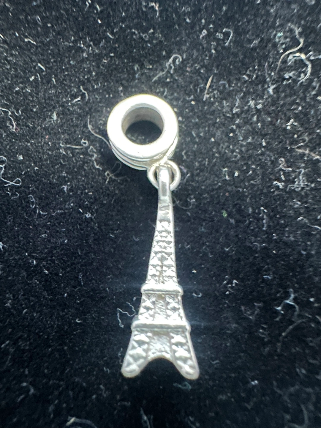 This bracelet is made of sterling silver and features a variety of charms including a cross, Eiffel Tower, couple, and more. The bracelet is in excellent condition. Charms are being sold individually. (Please see other listings for more photos) Complete Bracelet listed for $250. -Eiffel Tower $40 -Heart $75 -Lucky Penny $75 -Red bead $75 -Blue bead $75 Offers will be considered