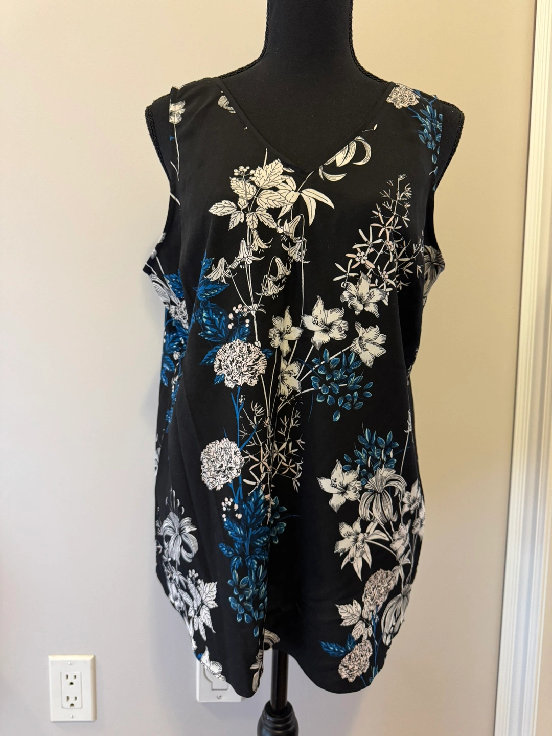 Banana Republic, size Medium, EUC Black sleeveless V-neck blouse floral print - $5 Danforth/Main