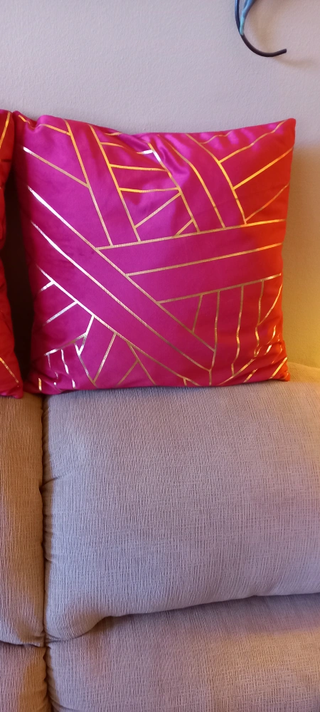 Set of two decorative red fabric and gold geometric design pillows 2 for $ 7 They are new