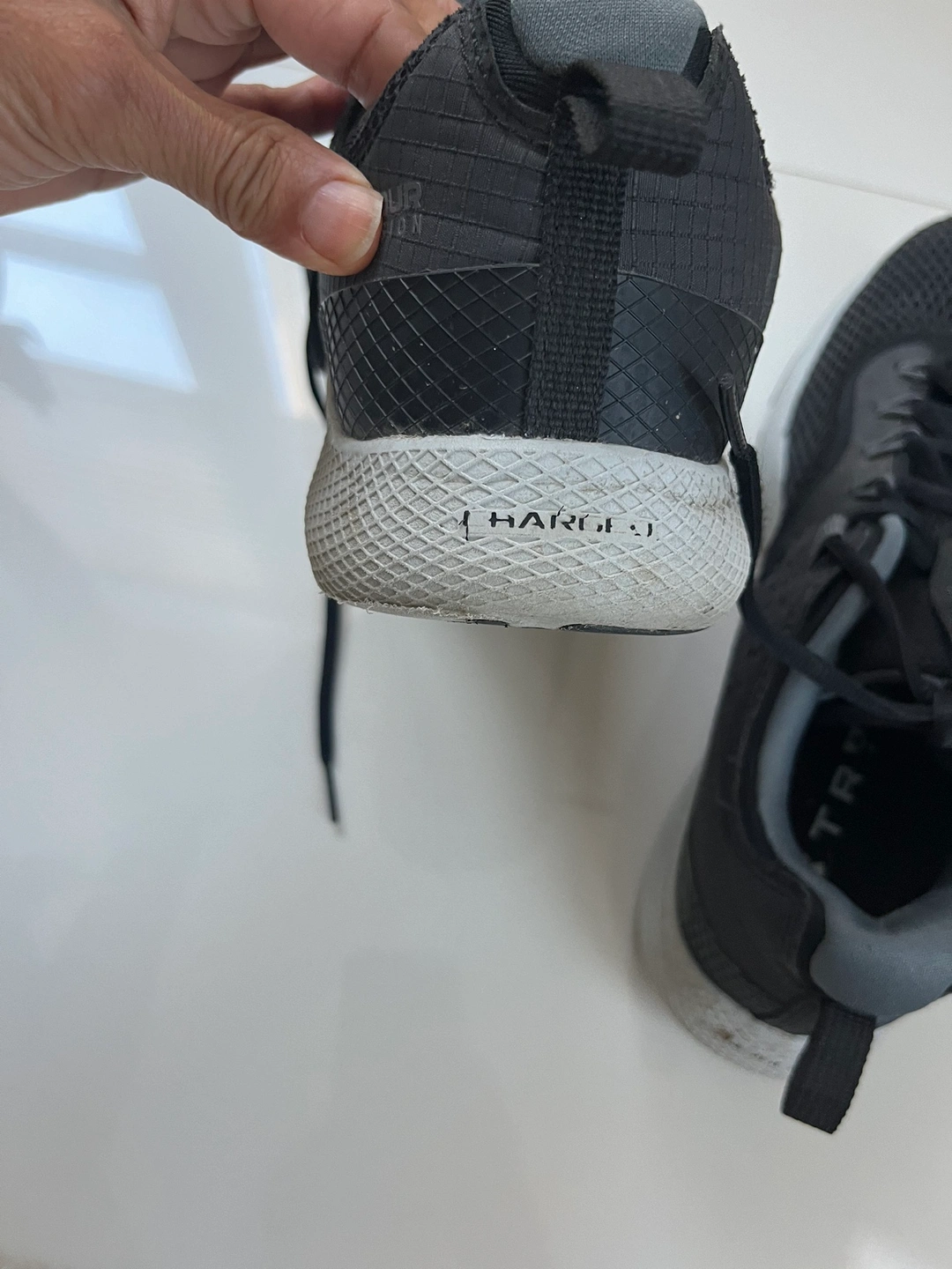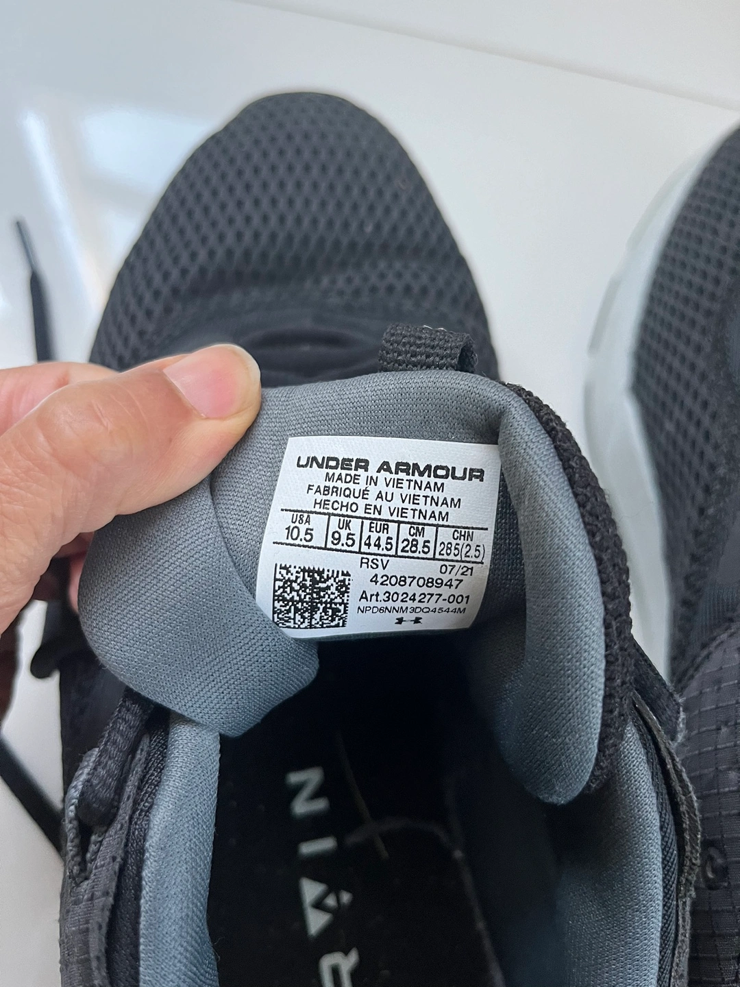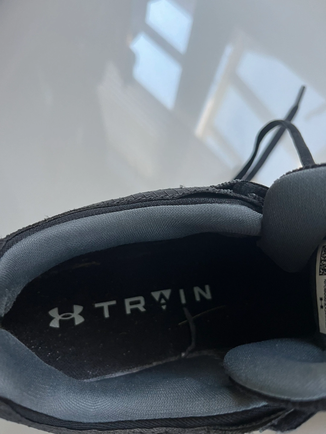 Really good condition and comfy. Black with charcoal trim. No holes and no excessive wear on outside heels. Slight wear on inside of left shoe but not significant. Fit more like a 10. Pick up Tuesdays through Thursdays. Cash only please