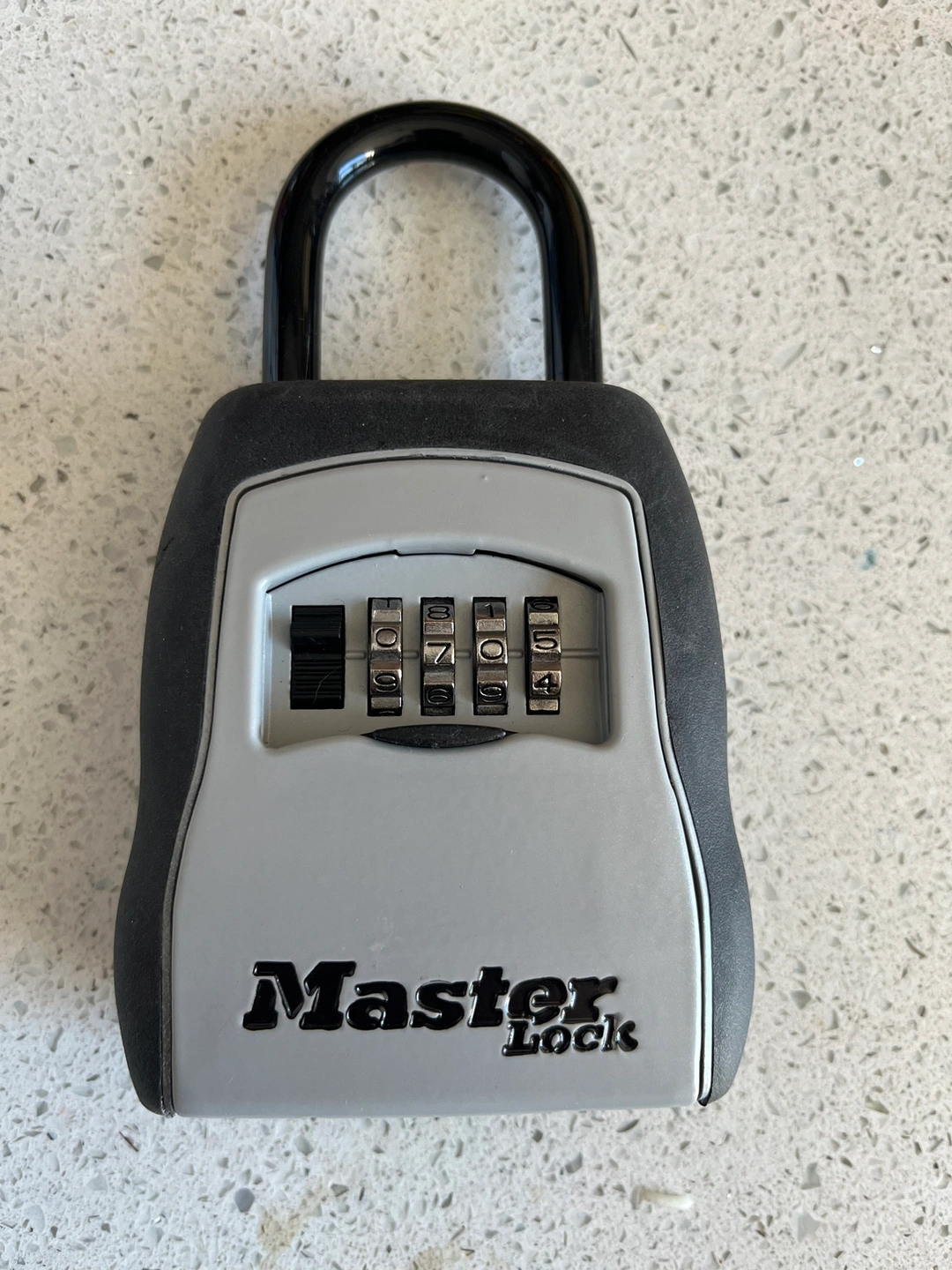 Master Lock Combination Lock with a secure combination lock and a key shackle. It is designed to be durable and weather-resistant, making it ideal for outdoor use. The lock can be reset to your own combination, so you can change it as often as you like. You can pick up by Carlton and Jarvis area