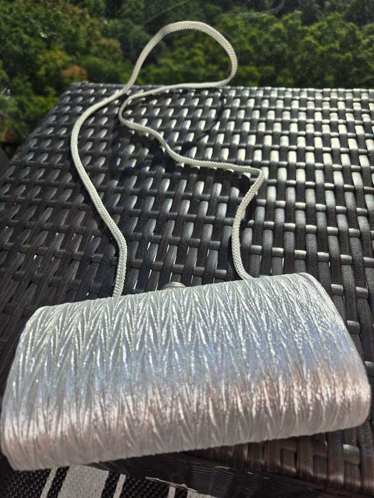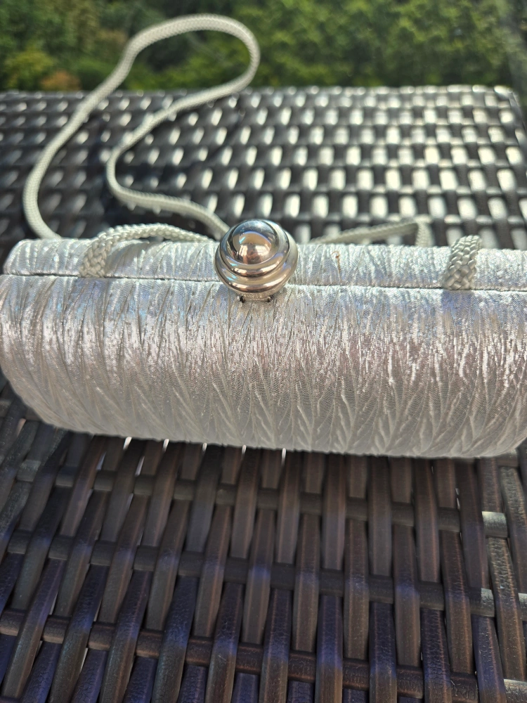 Ready for Xmas 🎄A small silver clutch with a chain strap. It has a silver metal clasp and a small pocket inside. wont fit today's phones.