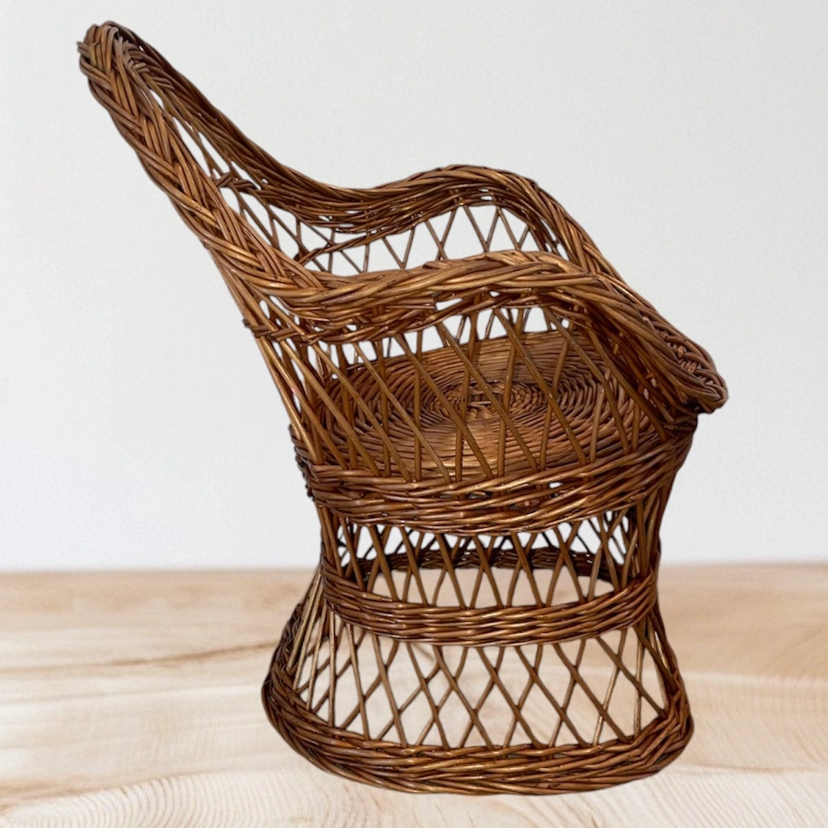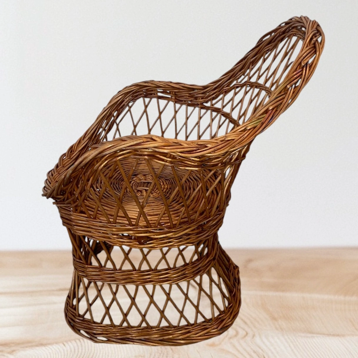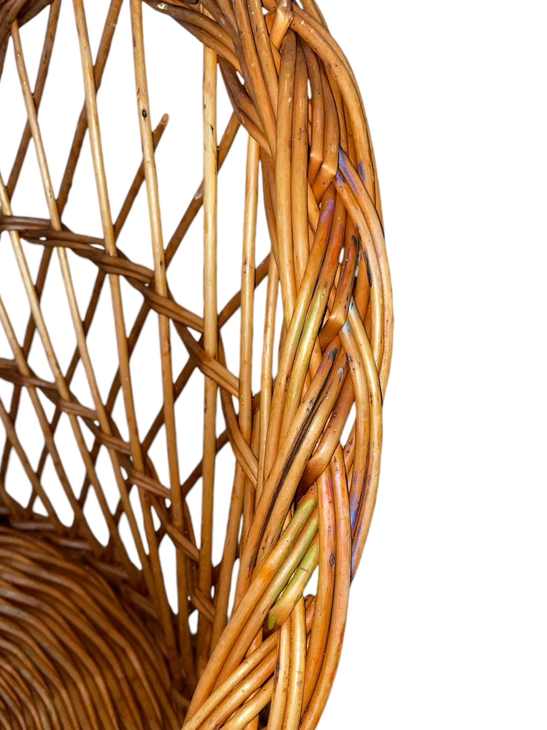 This charming wicker armchair was made in Italy in the 1960s. It is the perfect piece for your little one's room, or perhaps to give your favourite houseplant a boho-chic display. The chair shows some minor wear, consistent with its age and use. There is one broken piece, and a couple areas of discoloration; see photos. Height: 16.5" To be picked up in the Yonge & Davisville area.