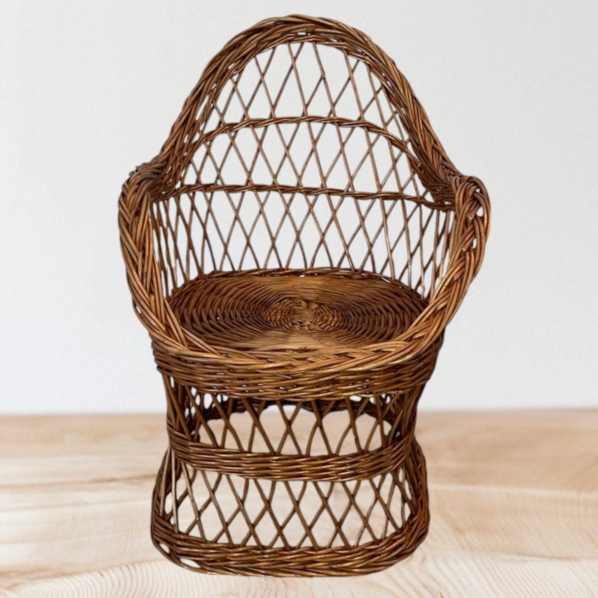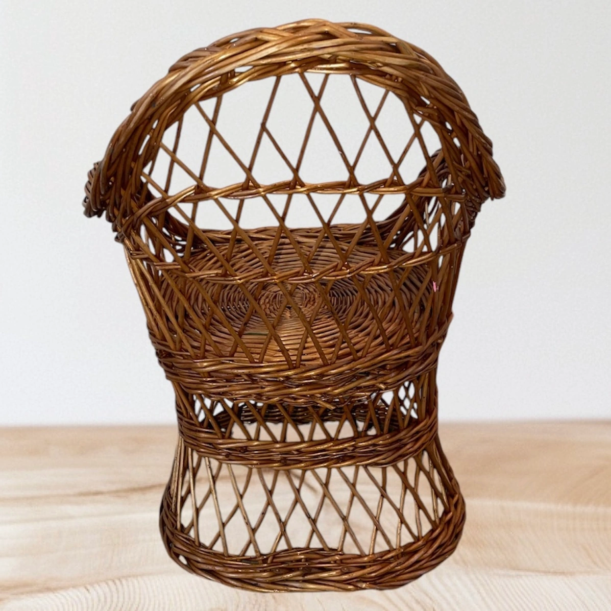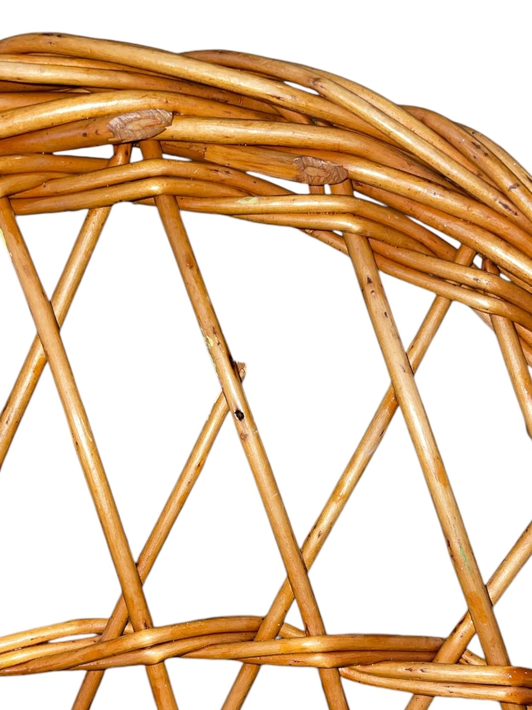 This charming wicker armchair was made in Italy in the 1960s. It is the perfect piece for your little one's room, or perhaps to give your favourite houseplant a boho-chic display. The chair shows some minor wear, consistent with its age and use. There is one broken piece, and a couple areas of discoloration; see photos. Height: 16.5" To be picked up in the Yonge & Davisville area.