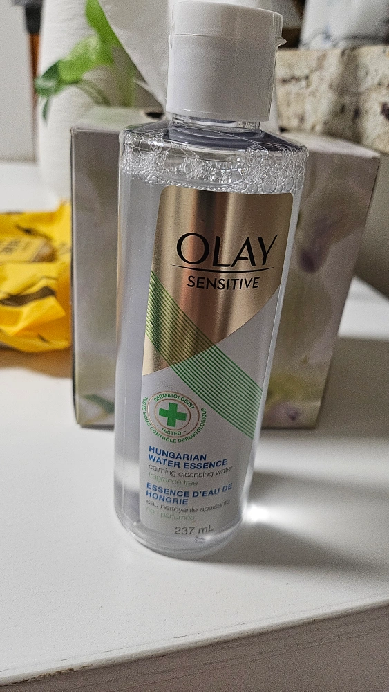 Olay Sensitive Hungarian Water Essence, calming cleansing water. Fragrance free. 237 ml.