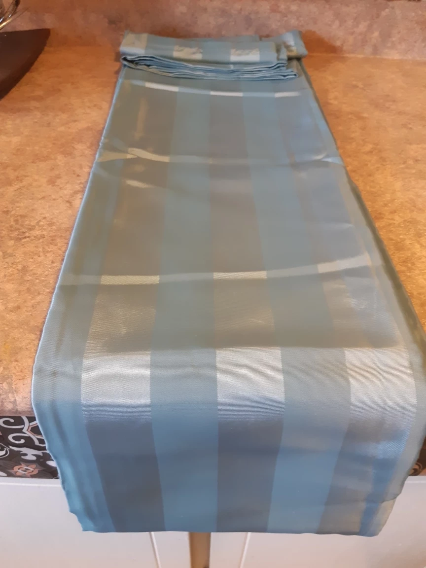 Teal Striped shower curtain. The stripes are slightly shimmery. 1piece. Excellent condition. Oonly available for pickup.