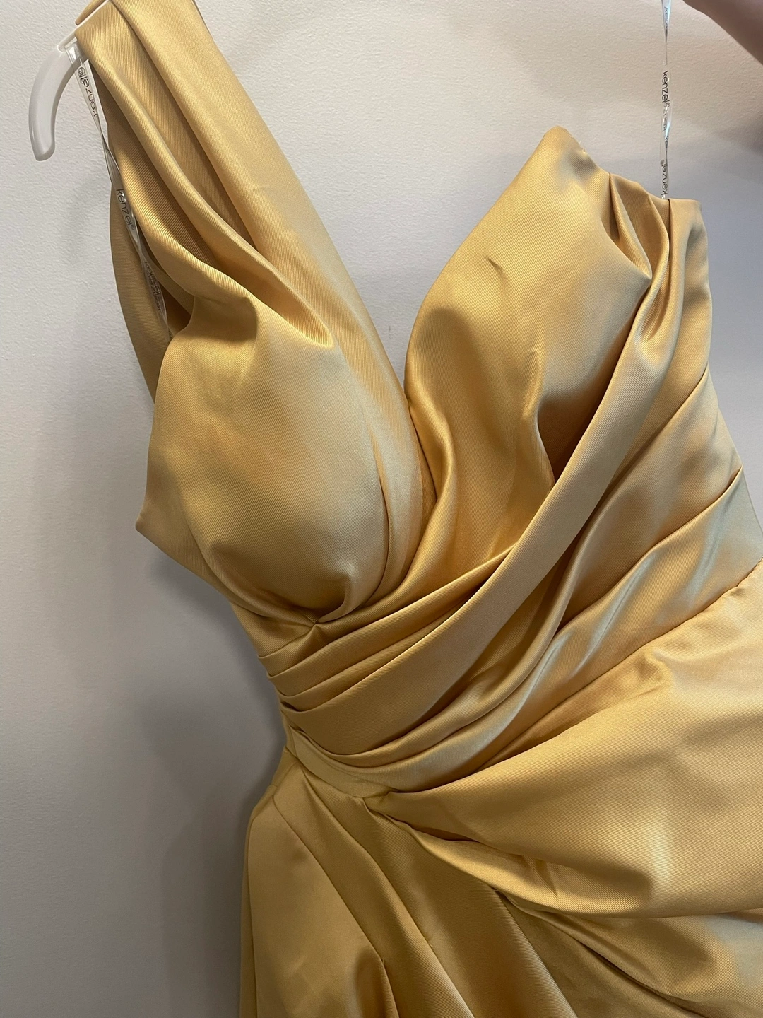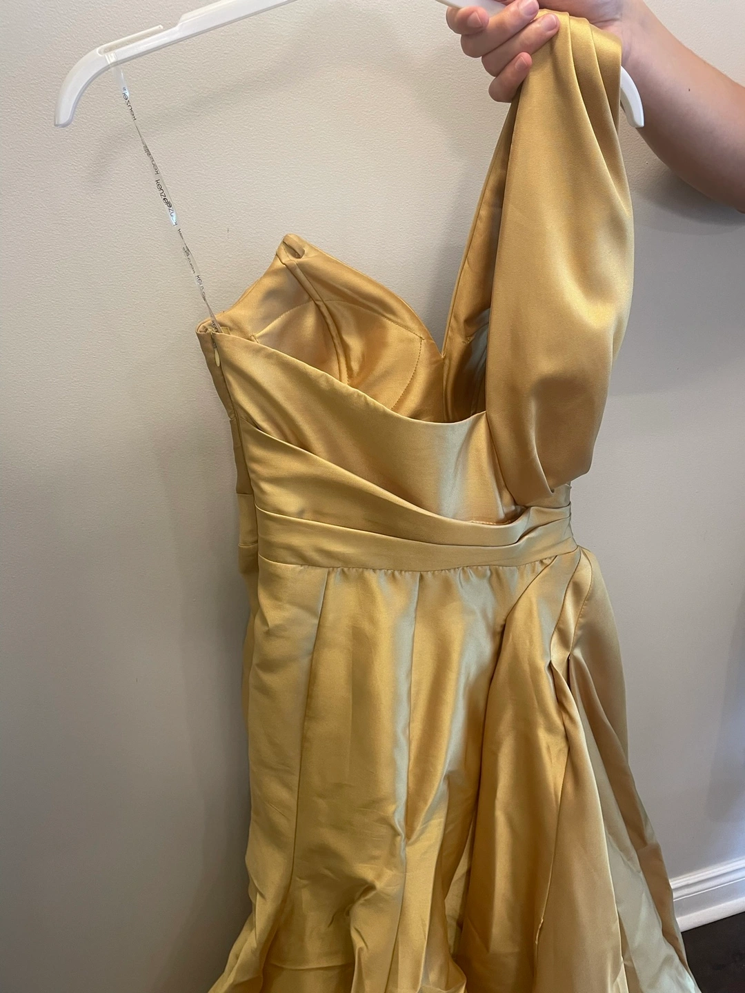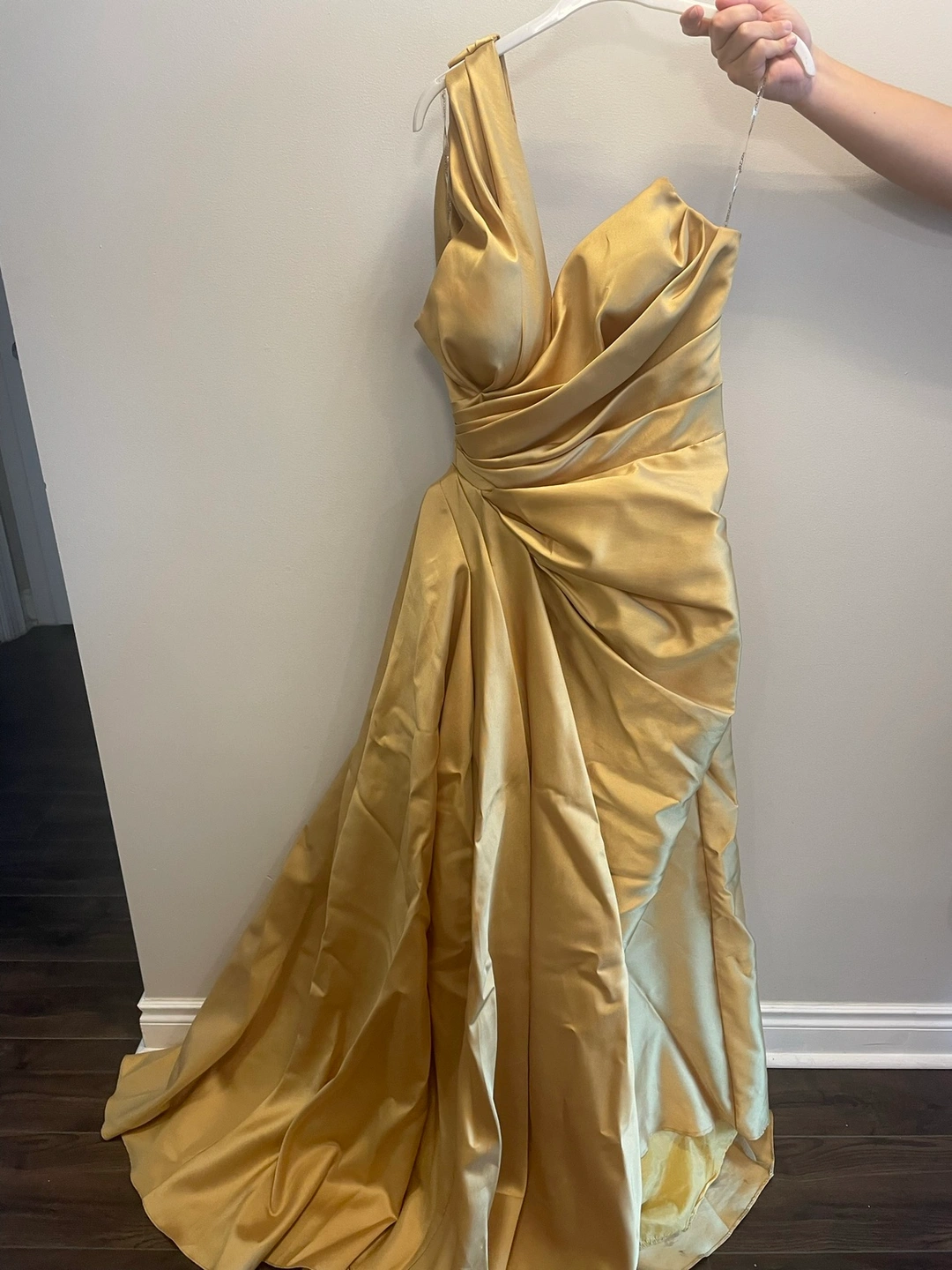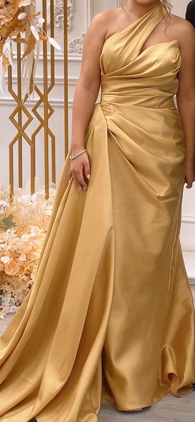 Floor length one shoulder gown. I wore this dress once. It’s gorgeous and I originally bought it for $1100.