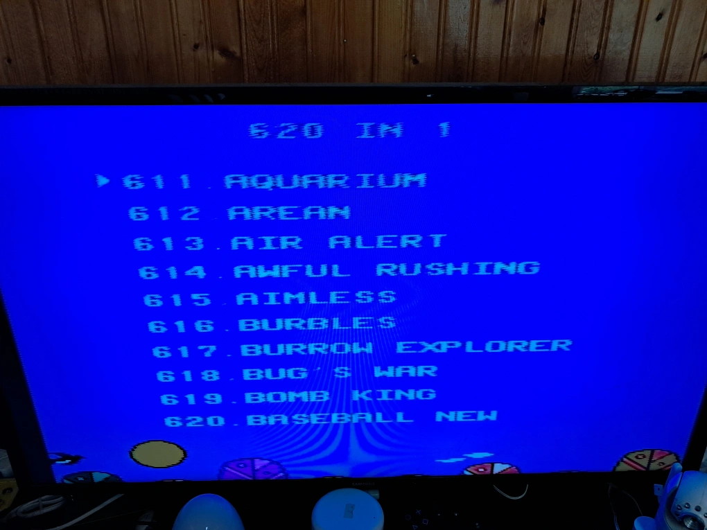 This is a retro gaming console with over 620 built-in games. It comes with two controllers, an AC adapter, and an AV cable.