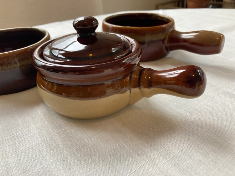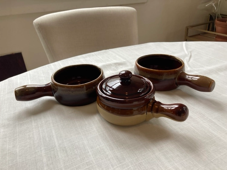 3 Stoneware soup bowls with handle oven safe. Pickup South Granville