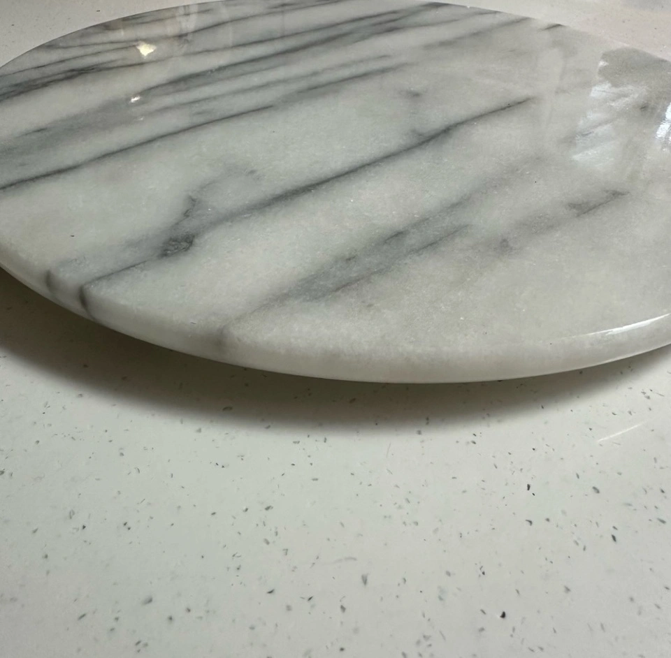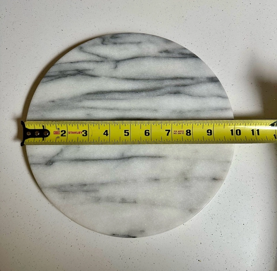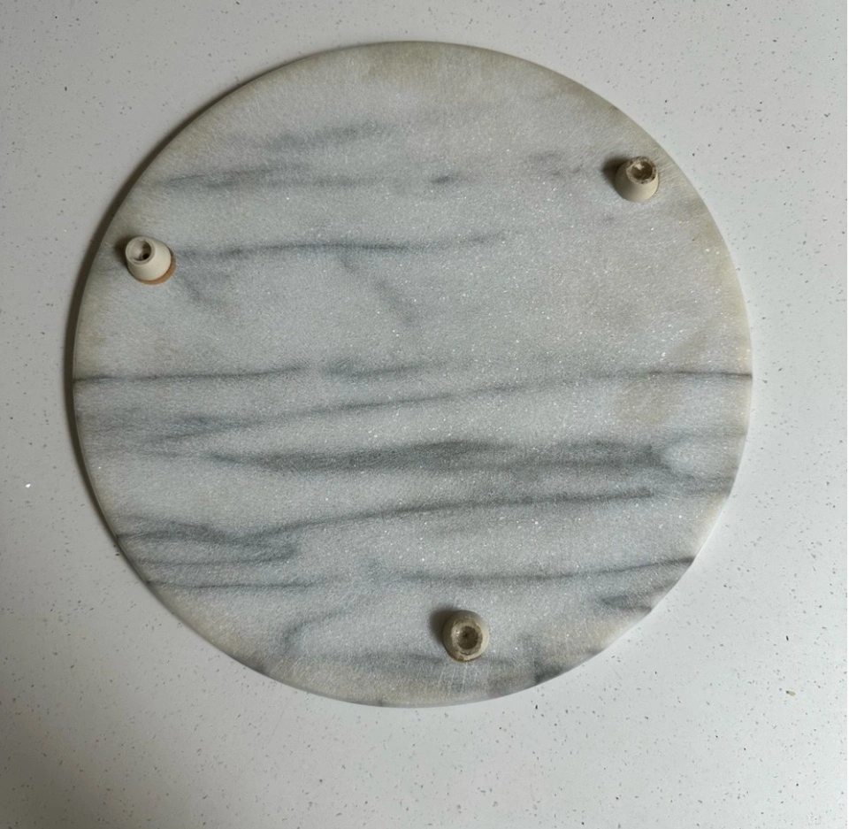Absolutely gorgeous marble accent to add to your home. No chips or cracks. Stunning for any kitchen or home decor, table centre piece, candle plate, or for serving appetizers to guests. Neutral to match any decor. Measurements in photos (slightly over 10” in diameter).