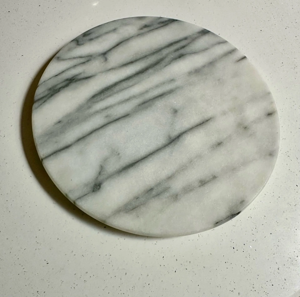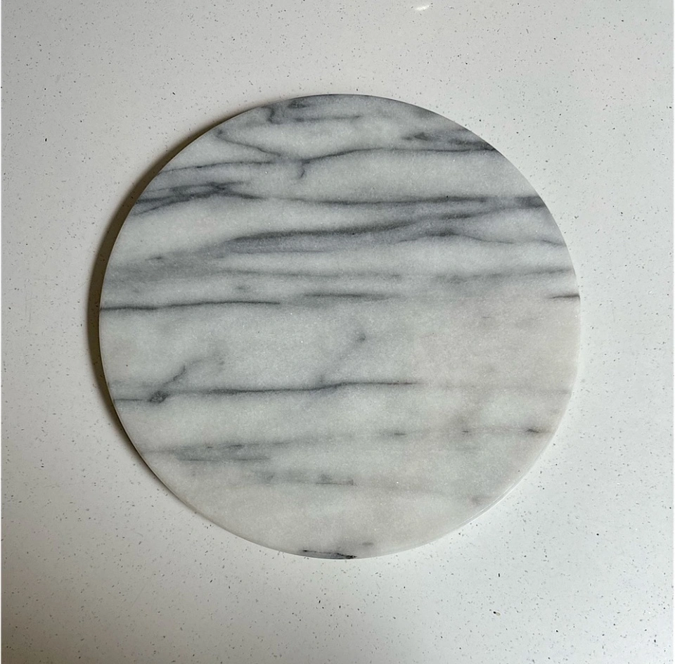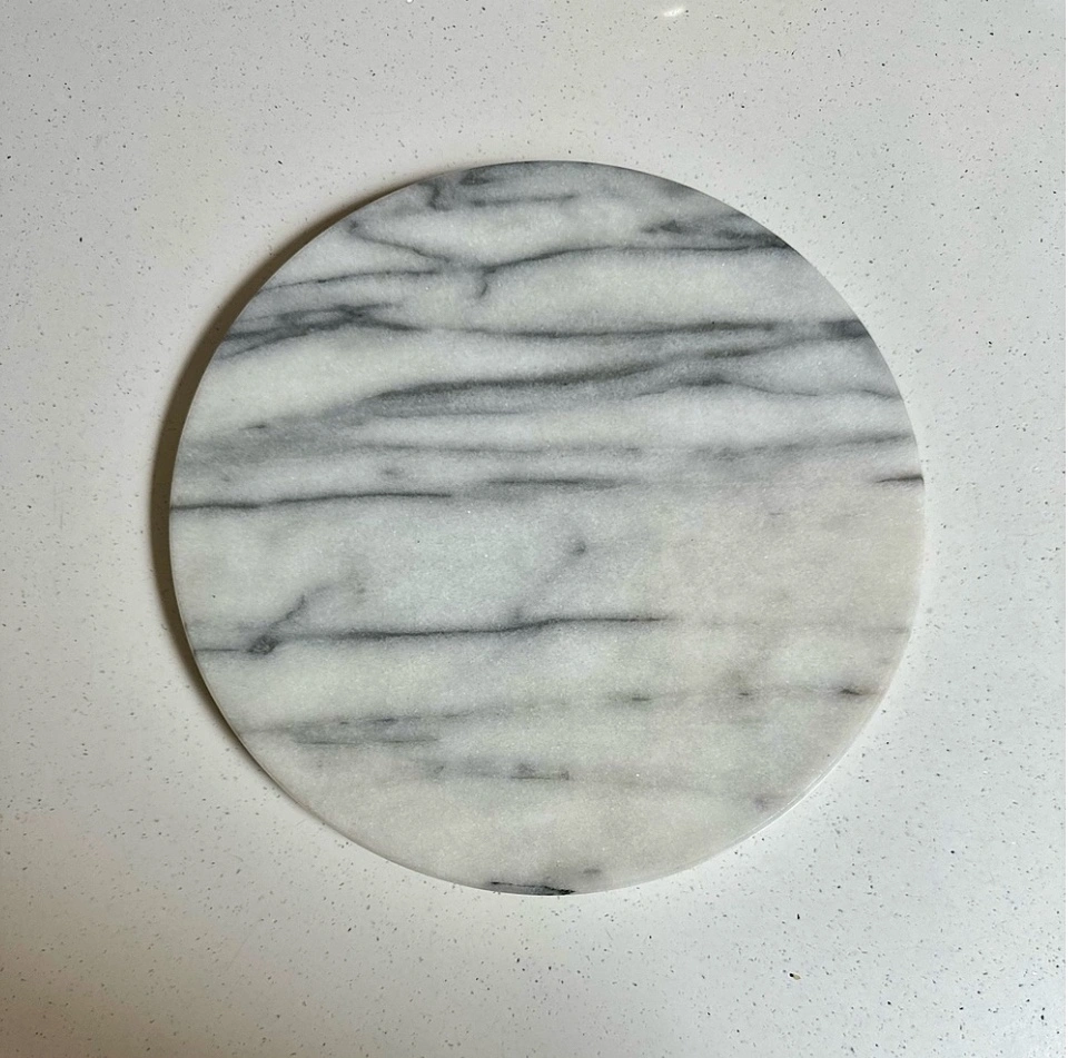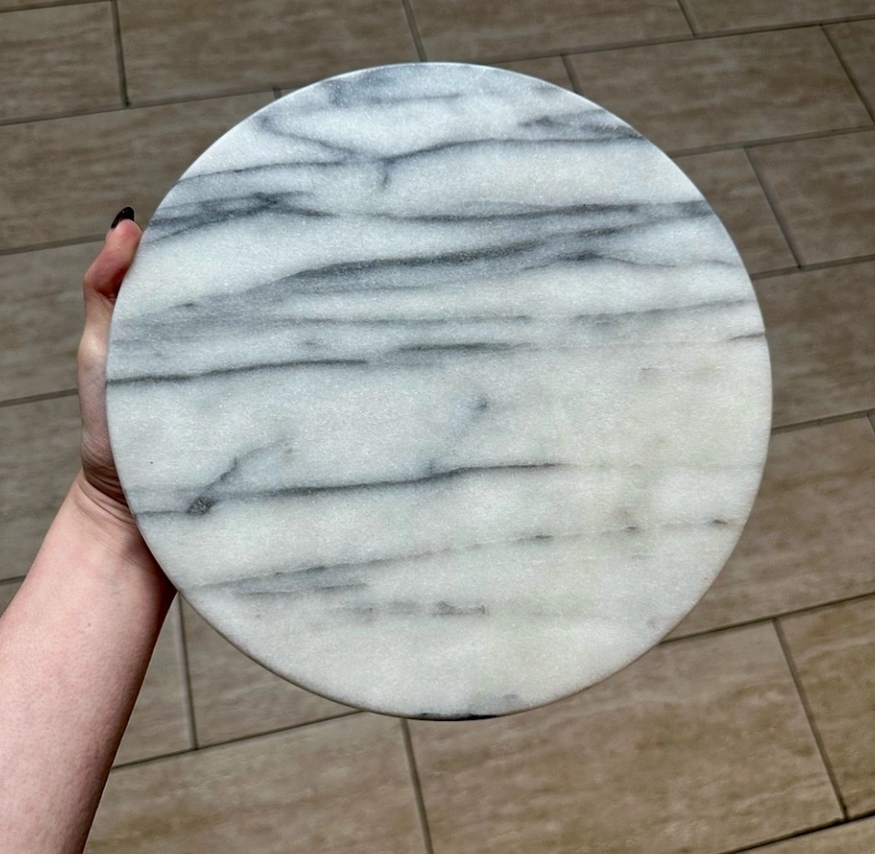 Absolutely gorgeous marble accent to add to your home. No chips or cracks. Stunning for any kitchen or home decor, table centre piece, candle plate, or for serving appetizers to guests. Neutral to match any decor. Measurements in photos (slightly over 10” in diameter).