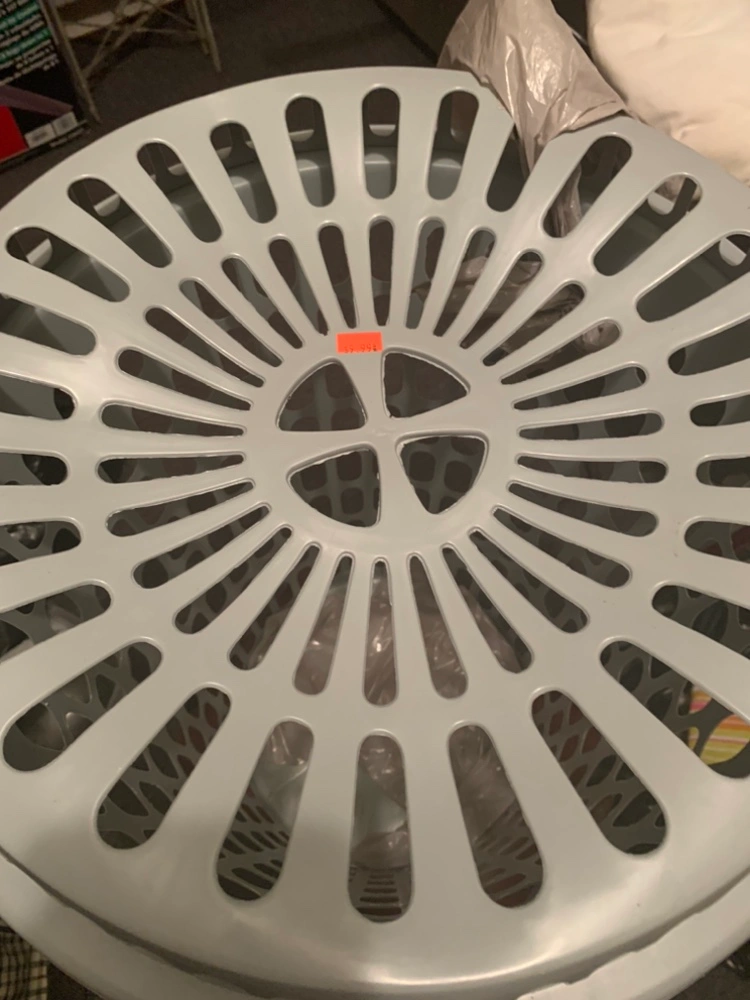 Grey laundry basket with a lid. NEW - never used Moving sale - non smoking & no pet household