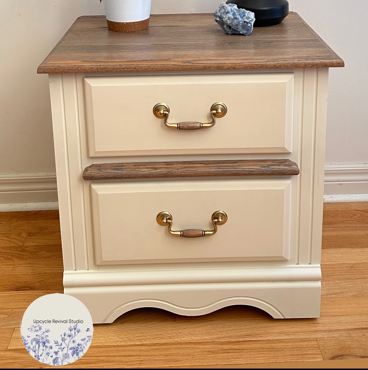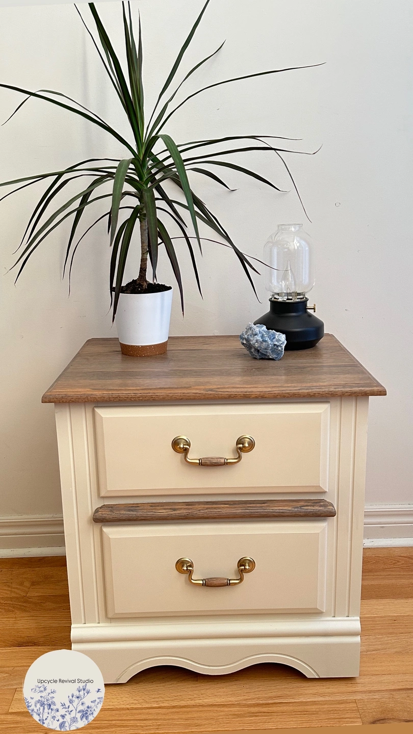 This beautifully refurbished two-drawer end table adds both style and functionality to any room. Featuring a modern yet timeless design, it has been carefully restored with a fresh finish and hardware, making it look like new. The two spacious drawers offer plenty of storage for bedside essentials, living room accessories, or small household items. Compact yet sturdy, this versatile piece is perfect for use as a bedside table, accent table, or living room storage solution. Dimensions: Height: 22” Width: 22” Depth: 16” Ready for pickup! • Price: $90.00