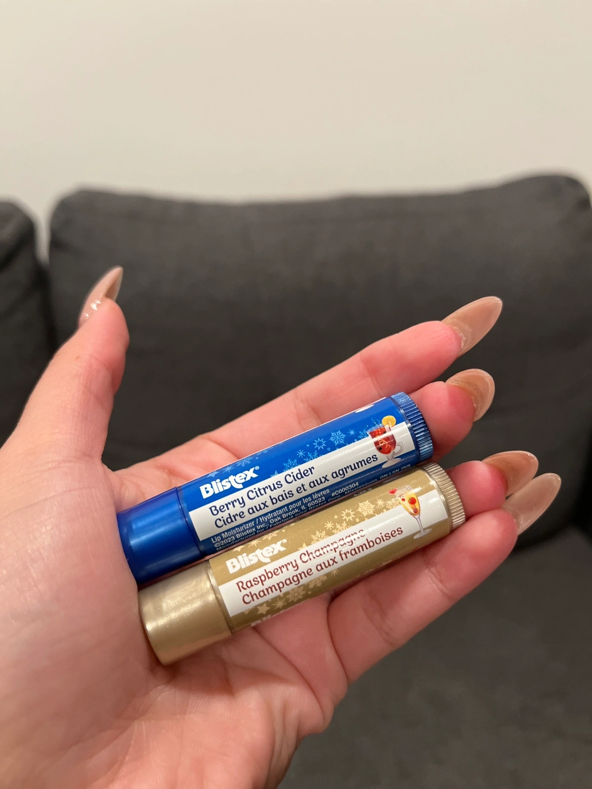 Two Blistex lip balms, one Berry Citrus Cider and one Raspberry Champagne. Brand new and unused