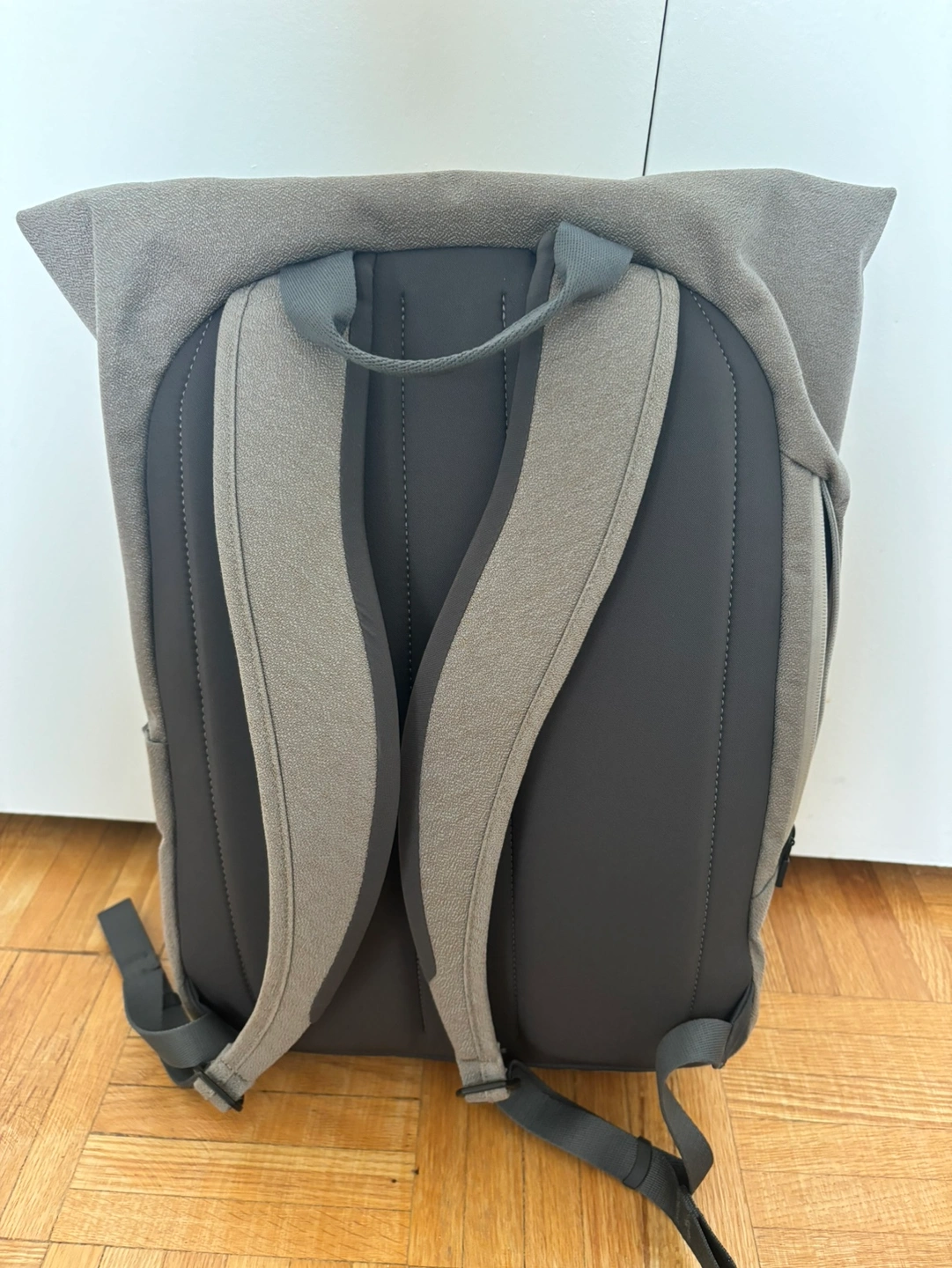 Grey colour, with a top flap closure and multiple pockets. Features a laptop compartment. Designated sleeve fits a 15” laptop Side zipper splays open, letting you reach what’s inside without rummaging Fold-top for easy, one-handed access Custom MagSnap fasteners keep the bag securely closed, and open with a tug Interior side wall pockets, Contoured adjustable shoulder straps and padded back panels