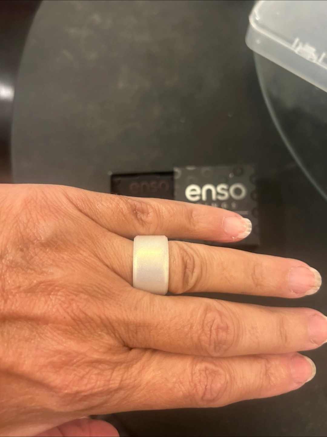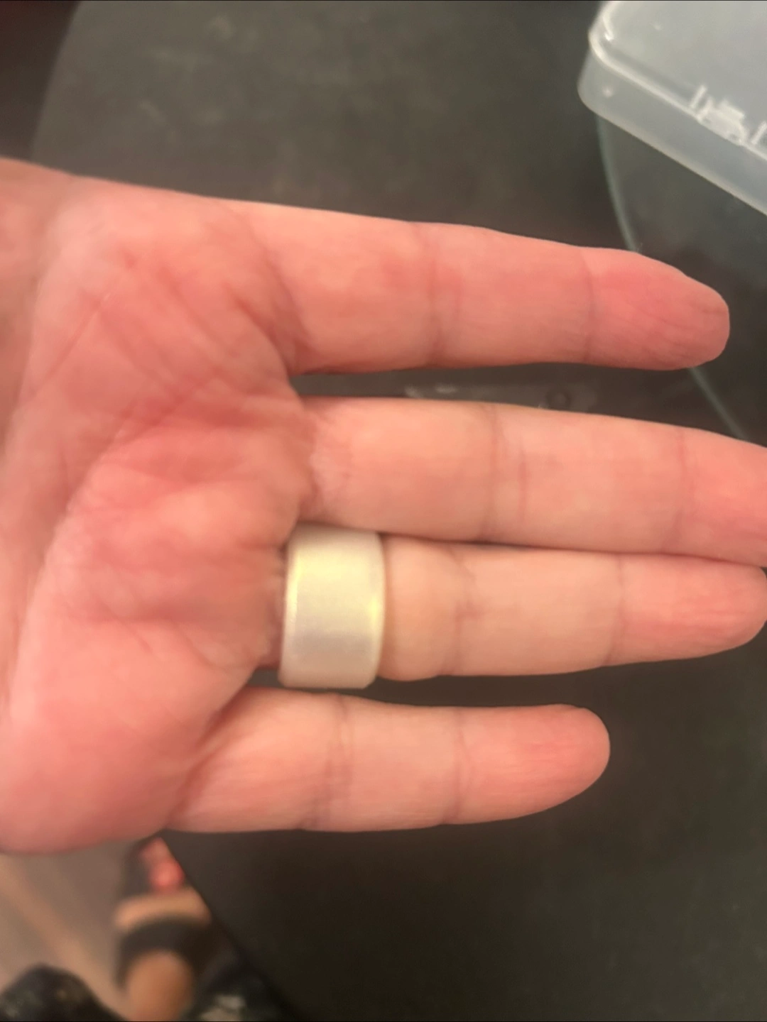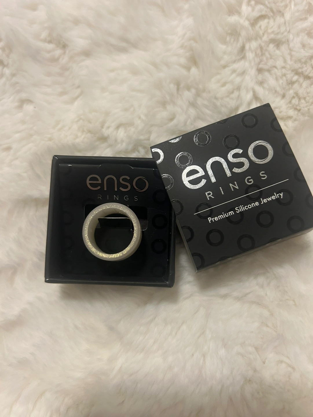 White silicone ring in original box. The ring has a subtle sparkle to it.