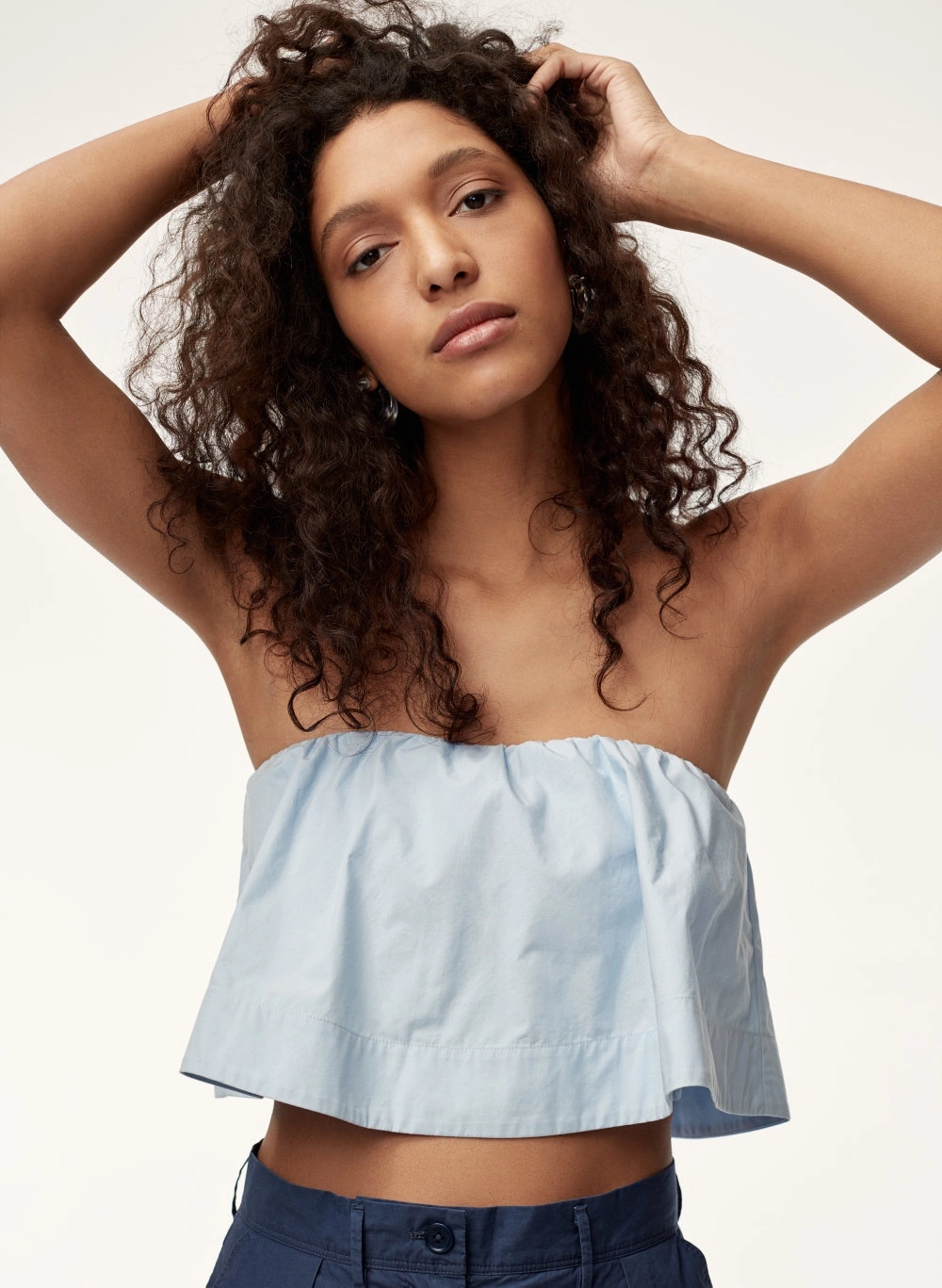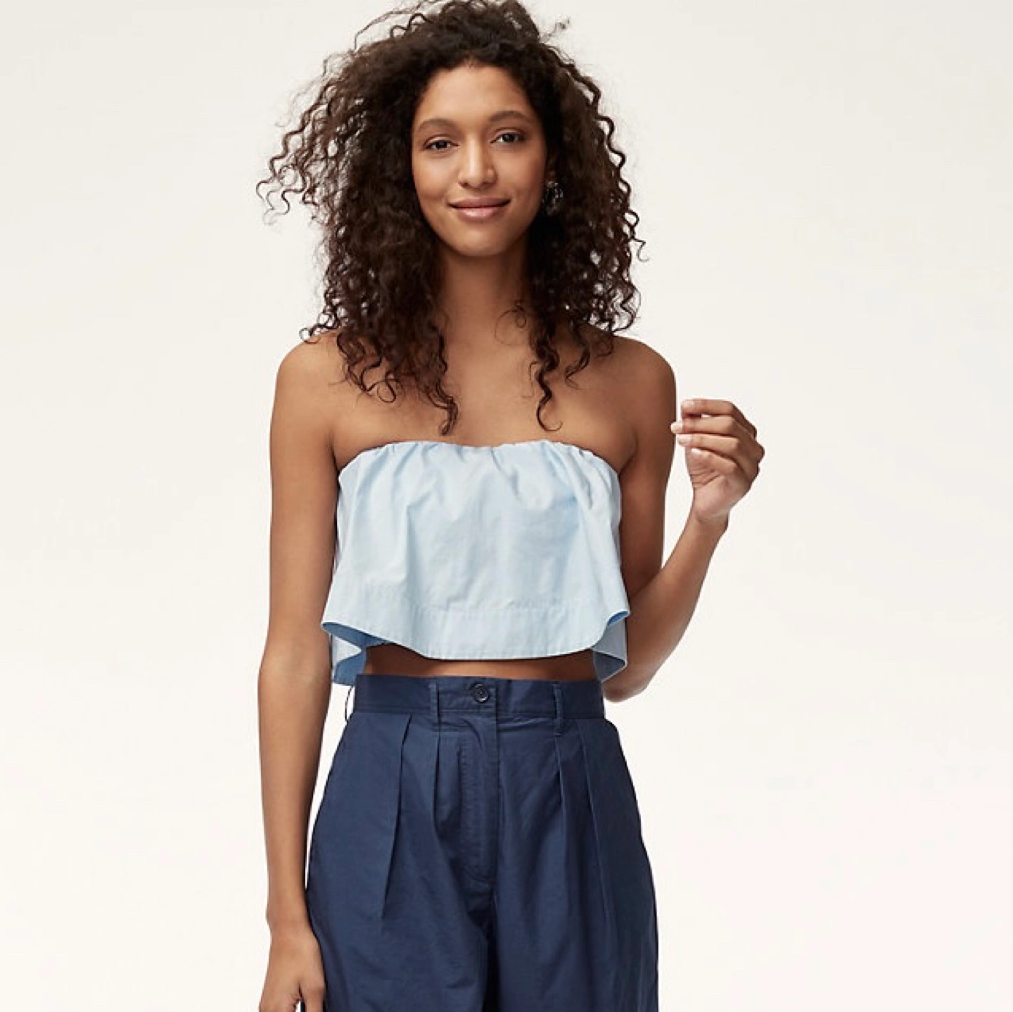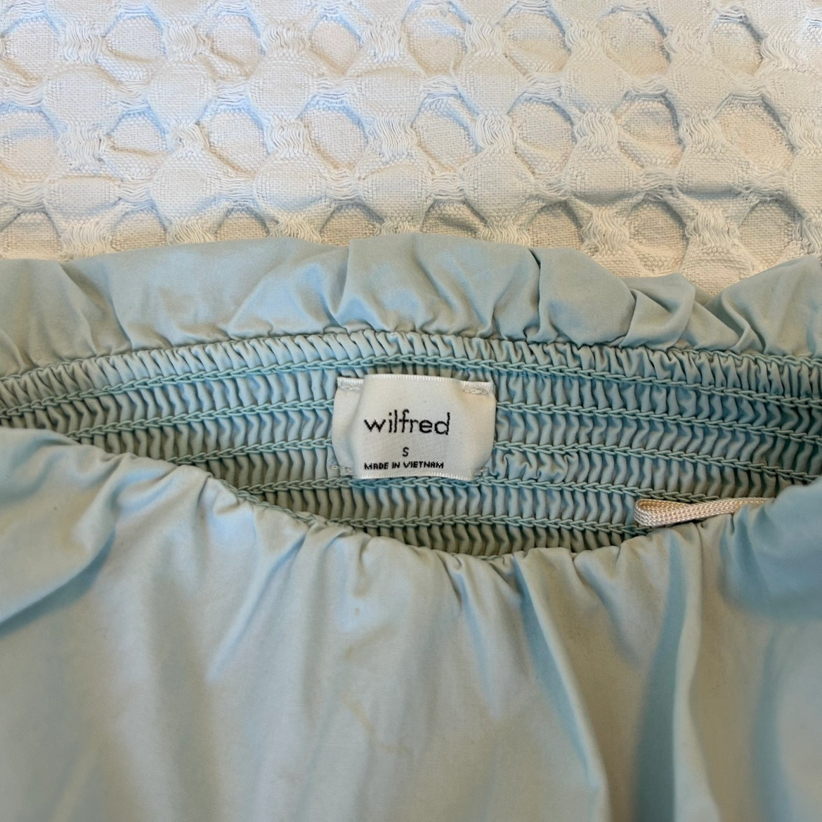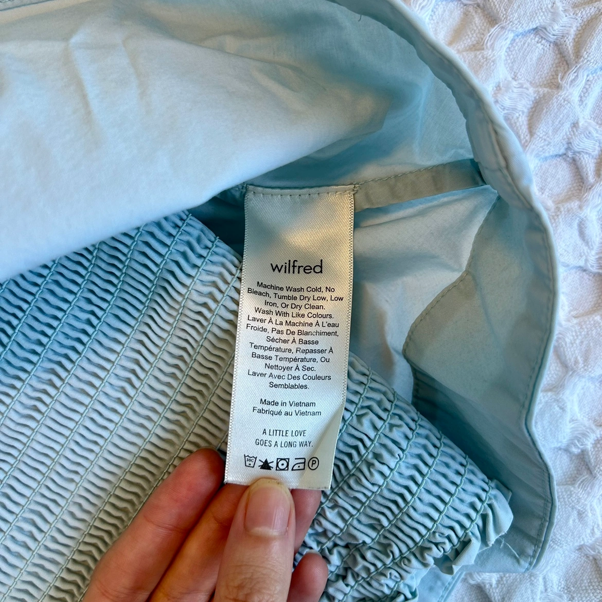 Wilfred light blue crop tube top with elastic lining and free flowing layer on top. Very comfortable and really cute for summer. Size Small. 100% cotton. In great condition. No flaws. Pickup at Burnhamthorpe and East Mall or Front and Spadina. If ad is up it’s still available so please DO NOT ask.