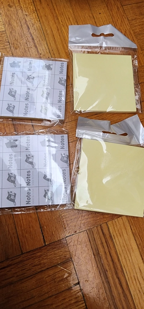 Four packs of Desk Tech Sticky Notes, each pack containing 50 sheets. The notes are 3"x3". The notes are blank and self-adhesive.25cent each sticky note