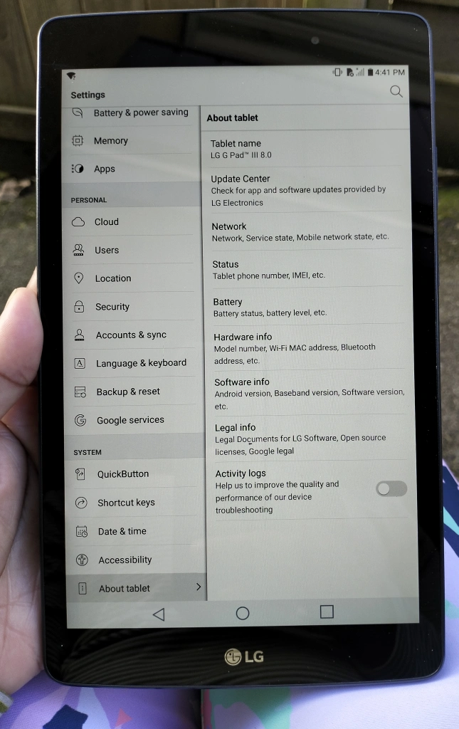 LG G Pad III 8.0 Tablet Used only for a few hours Almost Looks like new It has a cover Long Battery Life Good Camera Good for playing games, Browsing and watching movies.
