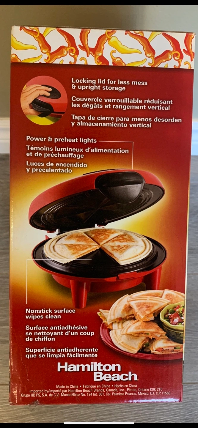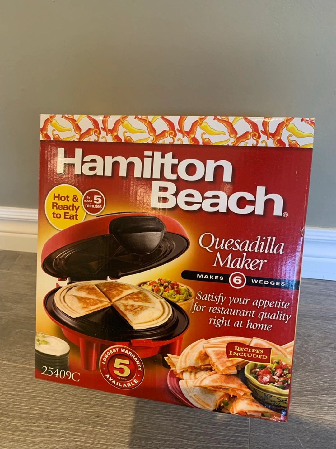 Hamilton Beach Quesadilla Maker Brand new- never used Makes 6 wedges Model # 25409C $65 on Amazon.