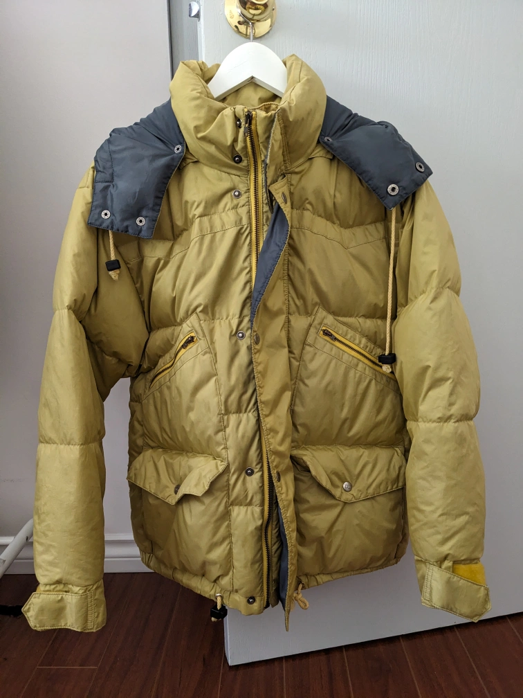 awesome puffy jacket, super warm with lots of pockets/adjustments. fashionable colour. size xs