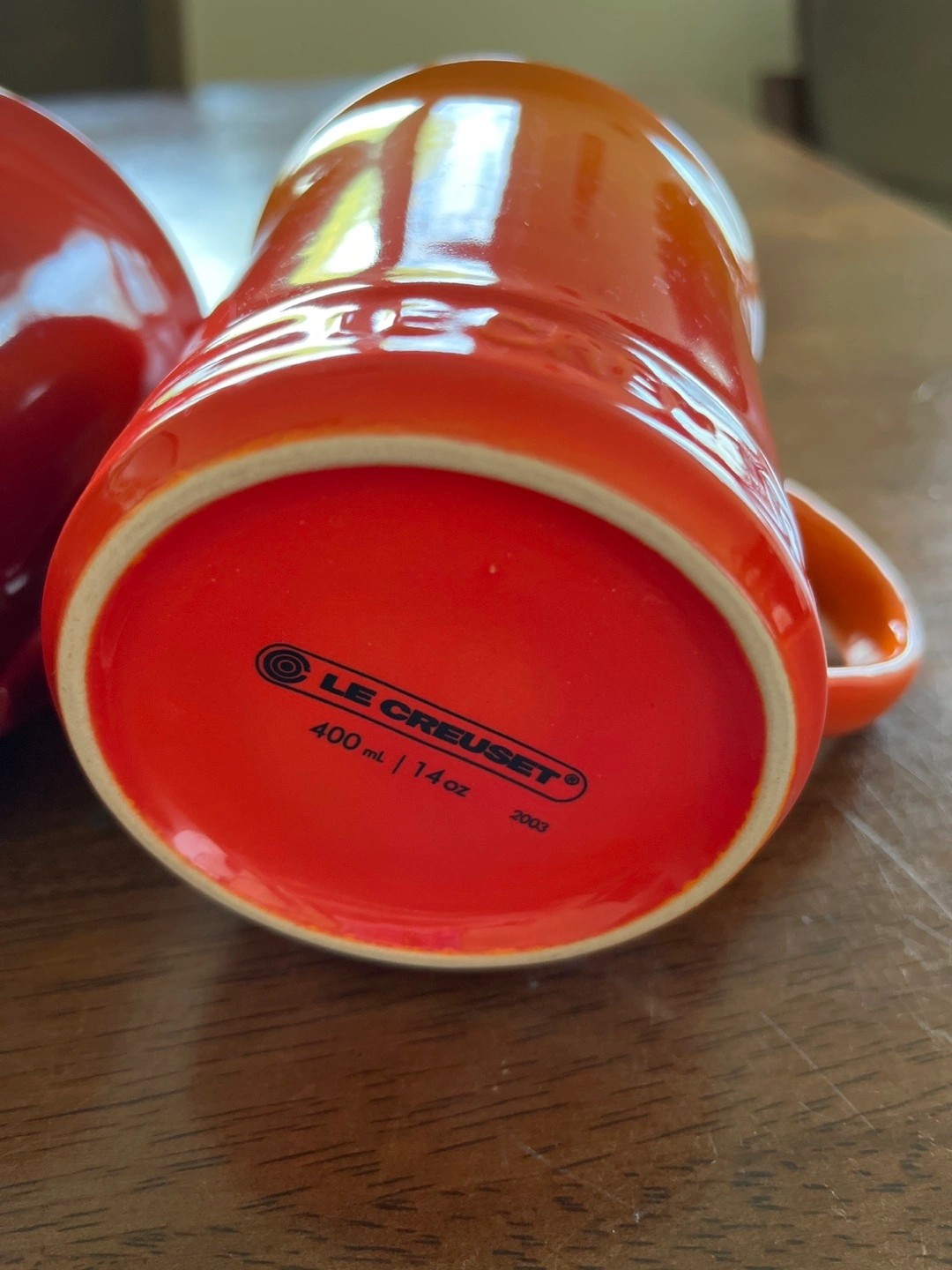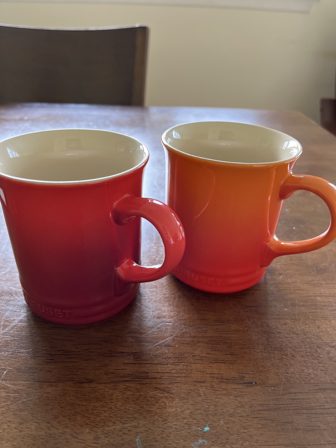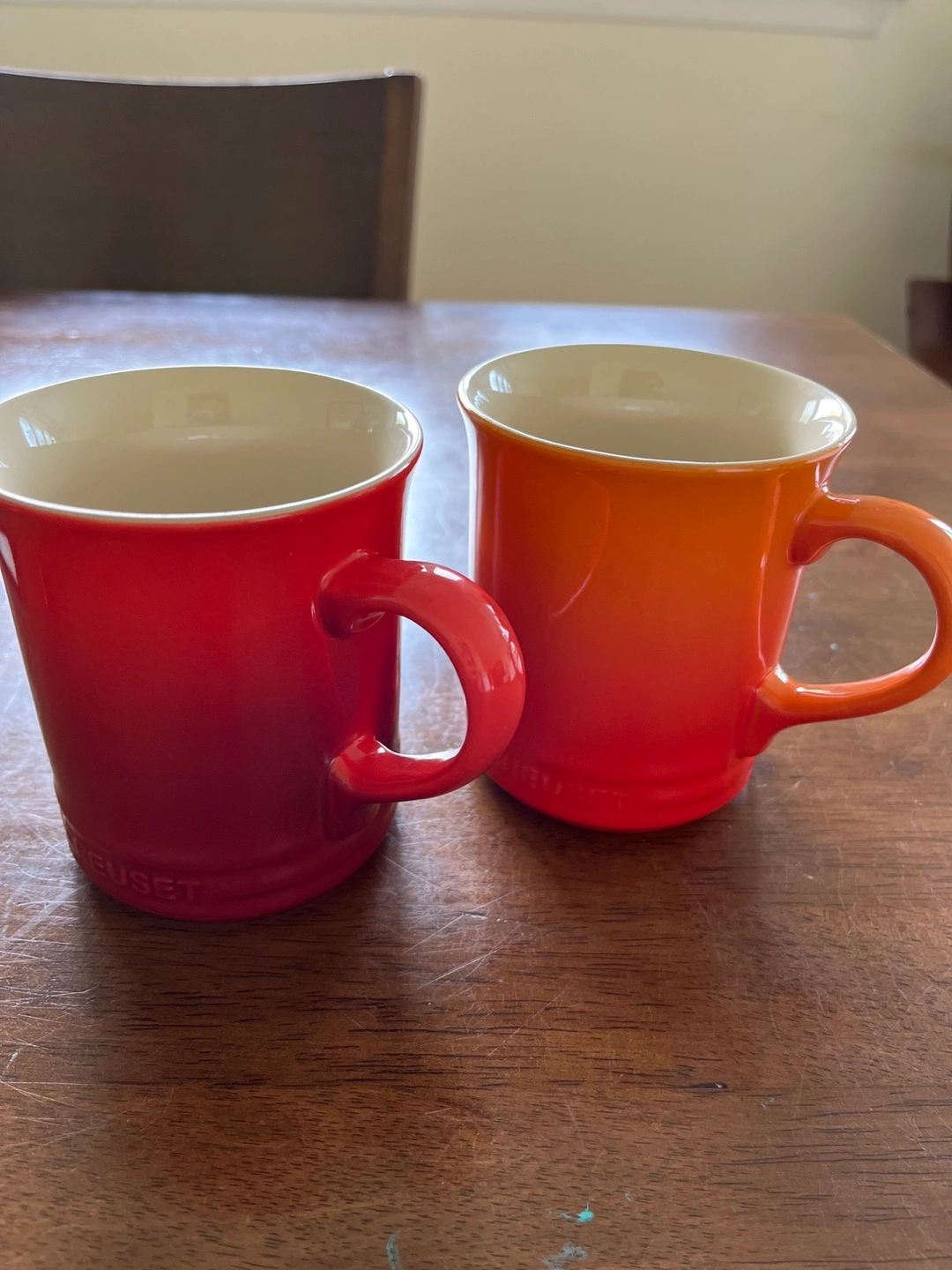 New le creuset coffee mugs in red and orange. Bought a set from Costco and I don’t need too many. Just washed them and have not used them.
