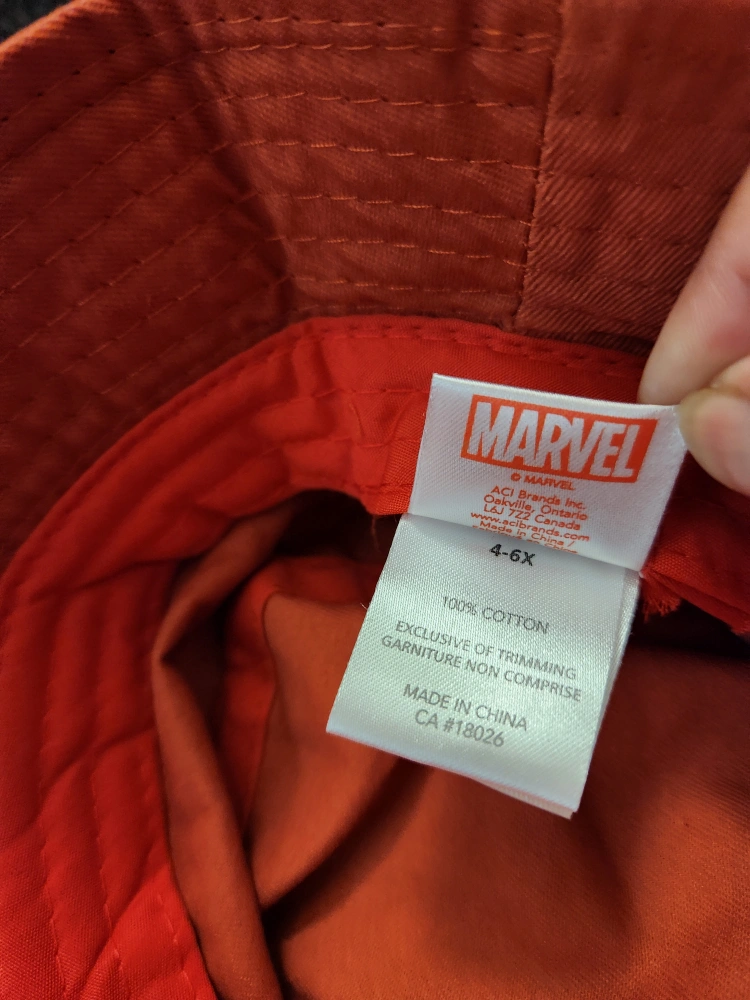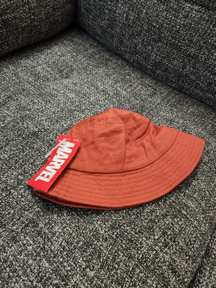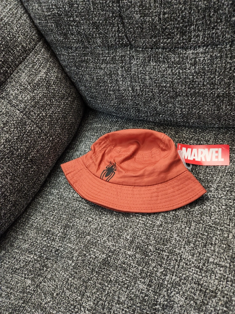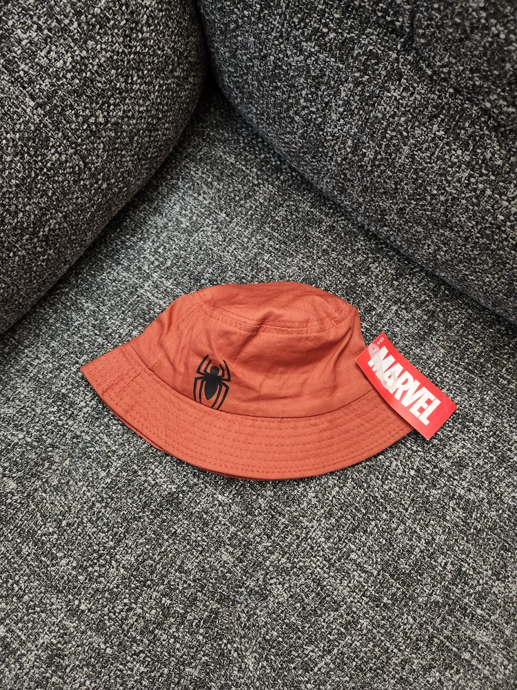 Kids Spiderman bucket hat in rust orange. Features a black Spiderman logo on the front and a Marvel tag. 100% cotton. Spiderman Kids hat, Sz 4-6 (toddler/preschool/grade 1, Fits Age 4-6 yrs old) *Brand New with tags. -100% Cotton *Only $8! -Pick up @ Bathurst & Steeles, North York