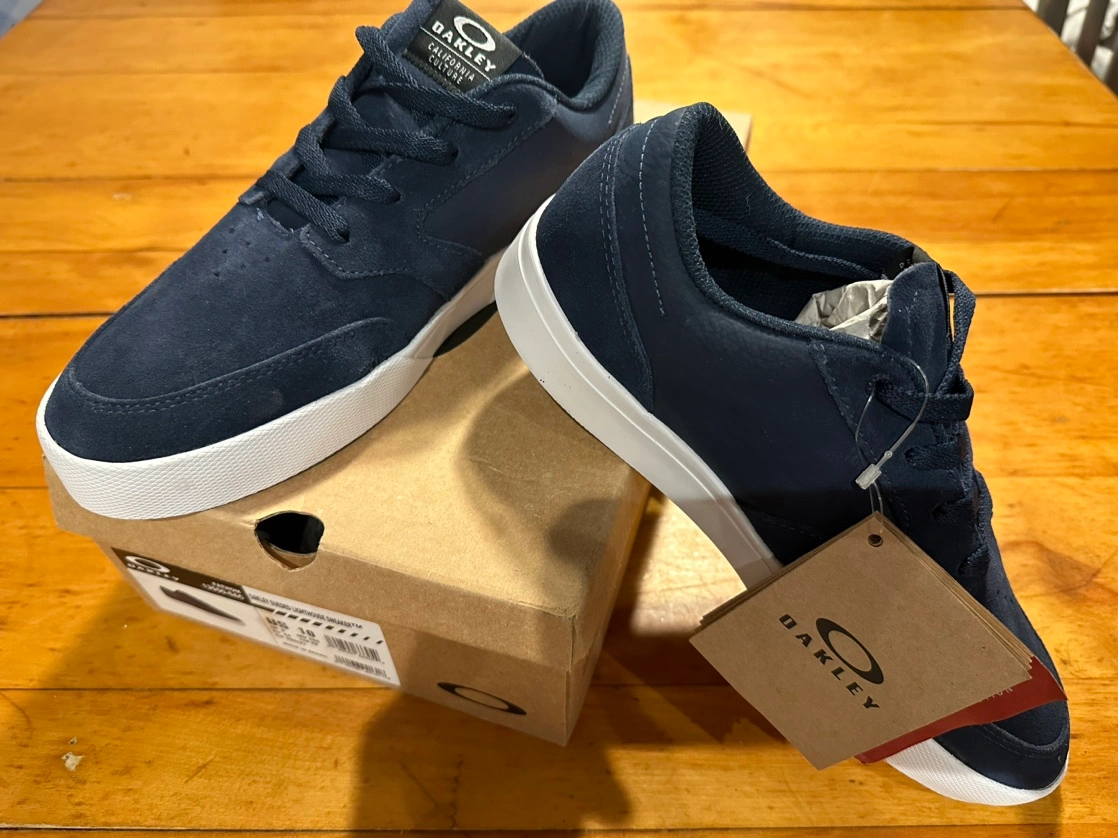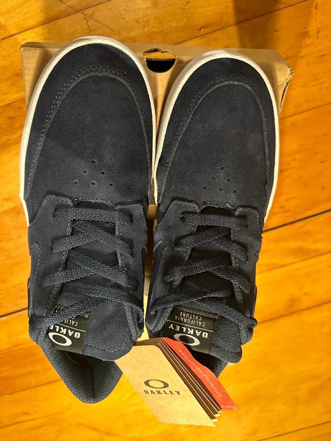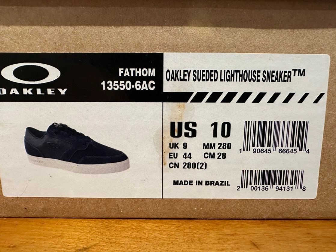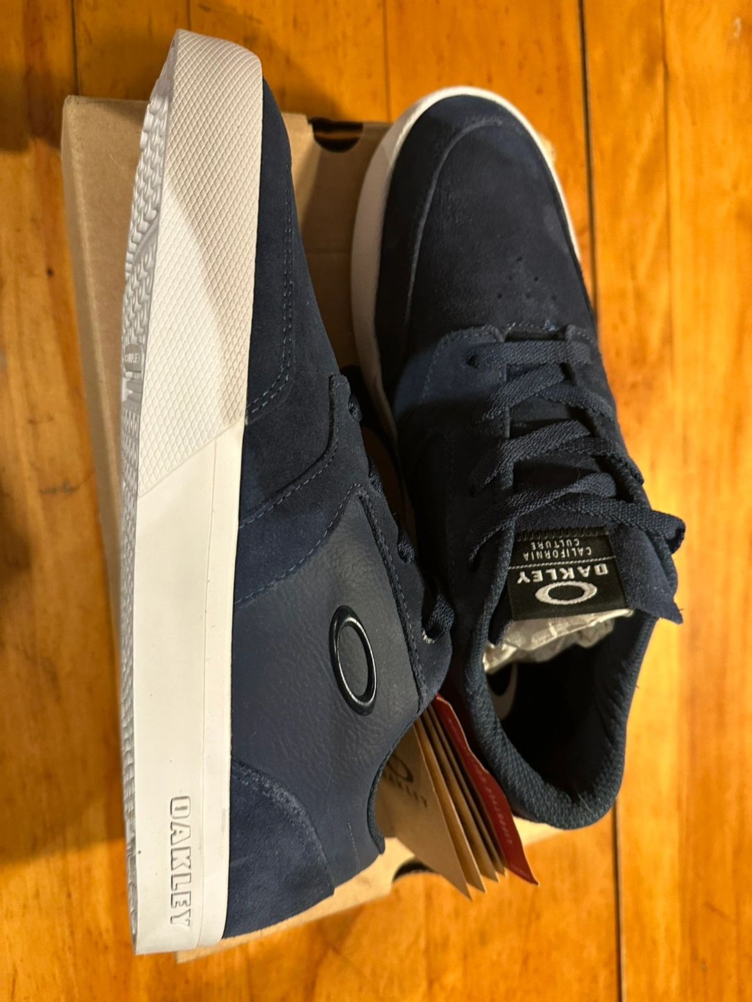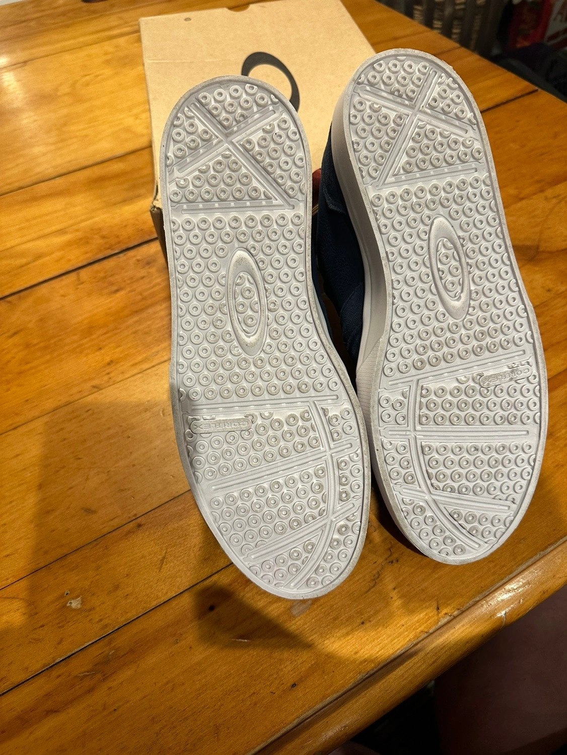 Brand New - still in the box Mens size 10 designer navy blue suede & leather sneaker. (Our son outgrew his size in under a month, and never got to wear them). US 10 EU 44 UK 9 MW 280 We paid $140, but are asking $80 for them. (I should know better than to buy things in advance for a teen. ) Pick up near Kensington Market, Spadina & Dundas, or downtown. Key Words: Real Leather BNIB Running Shoe White Rubber Sole (Non-scuffing) Lifestyle Collection California Culture Surfer Skater Culture Fathom 13550-6AC Similar to Vans Similar to Chucks