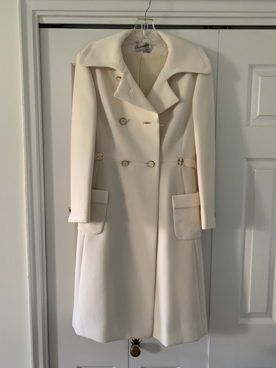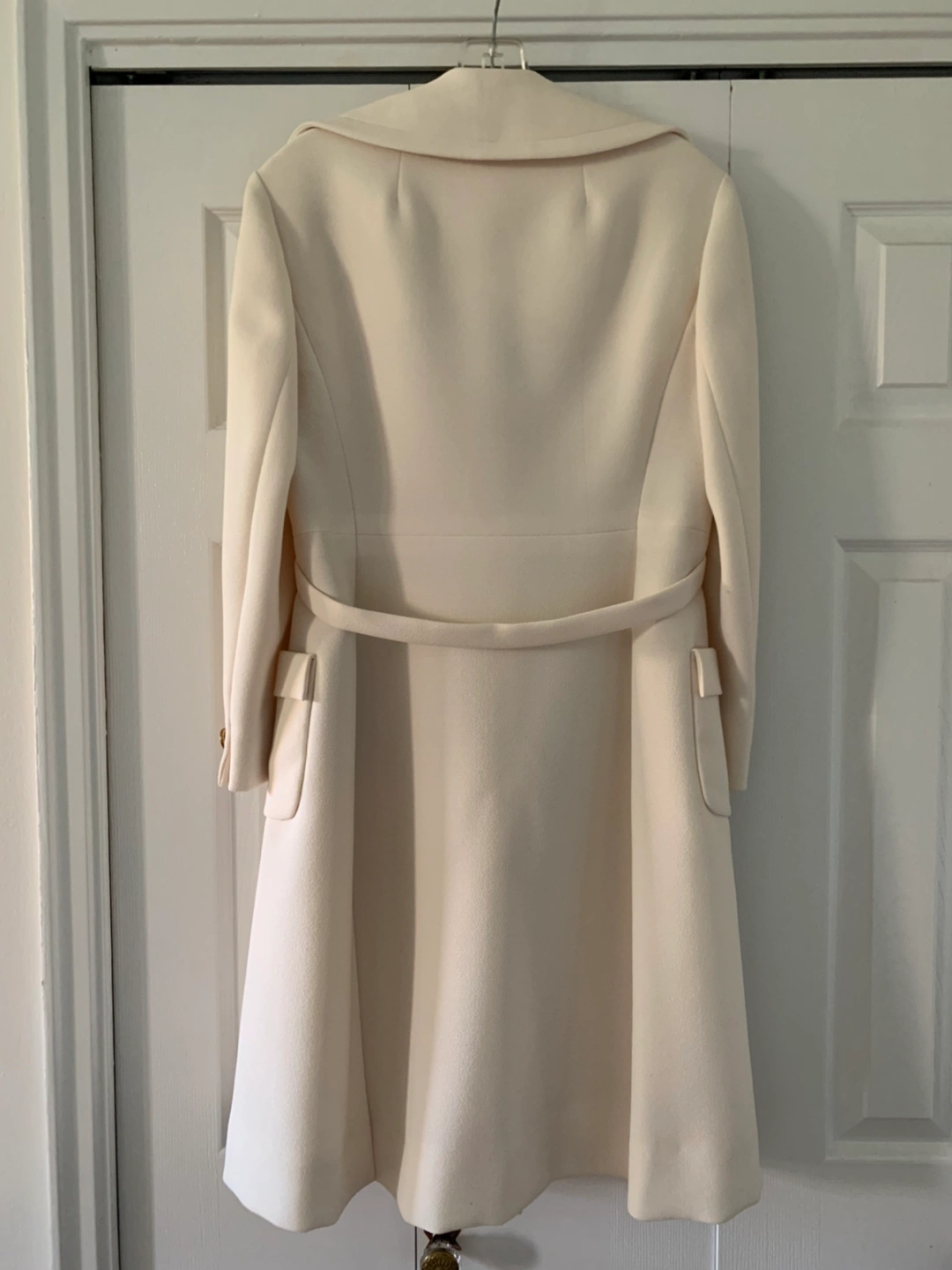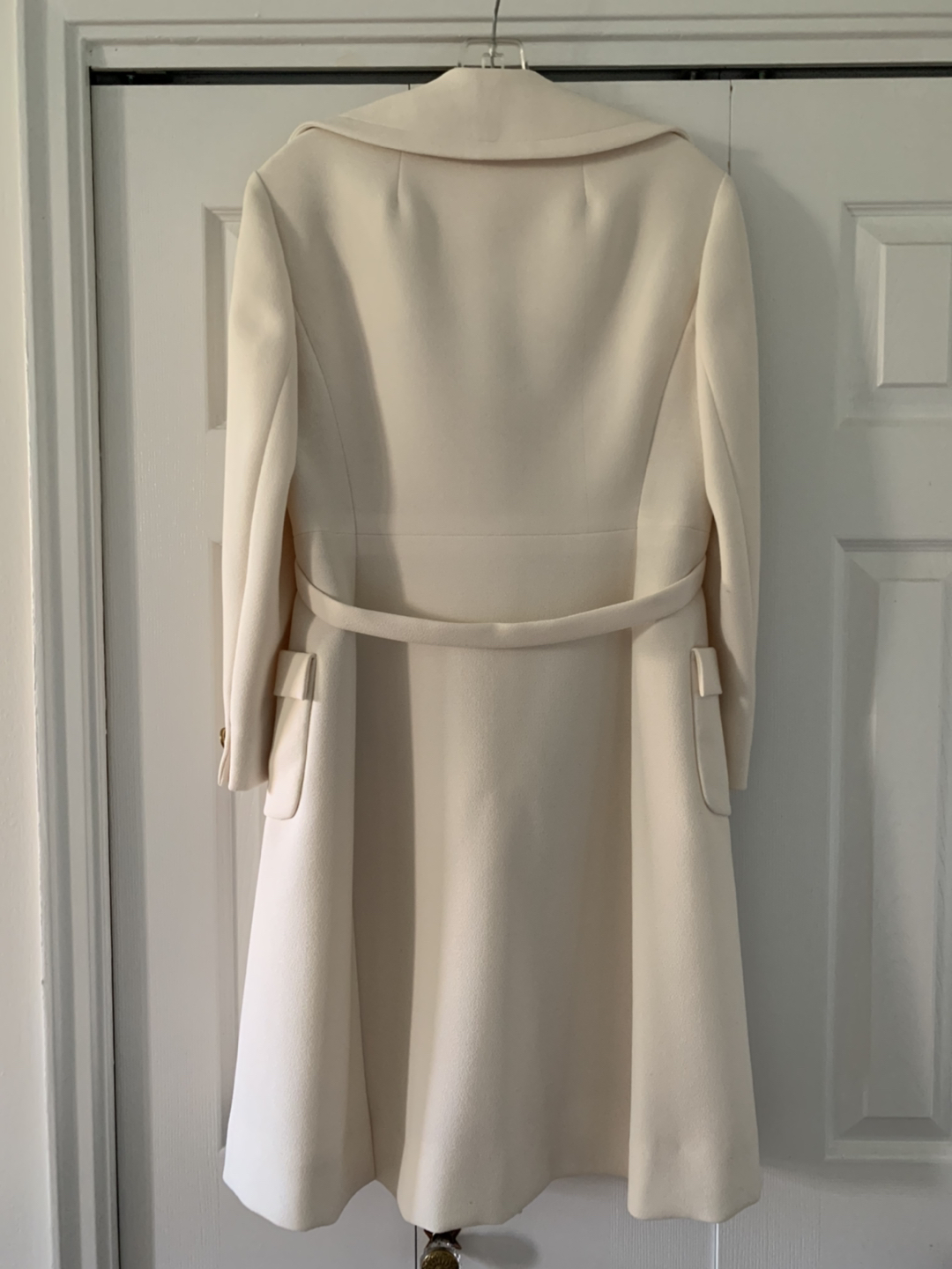 This off white number is structured style to the max. It’s 60’s flair is perfect for a smaller frame. There’s no size listed but likely be a size small. It’s in great condition but please note it is missing a button on the front. Wear it open or closed, but you’ll definitely look chic this Fall. Colour: Off White or Cream Size: Small Brand: Fashionwise Pick up only at Spadina and Lonsdale, Toronto.