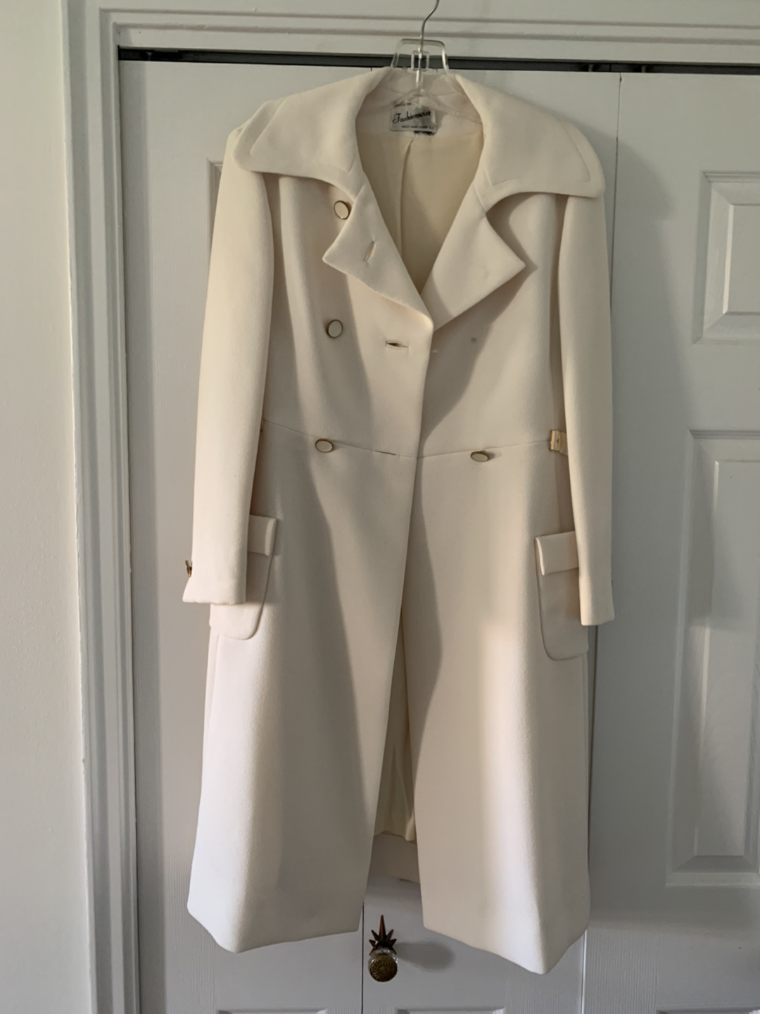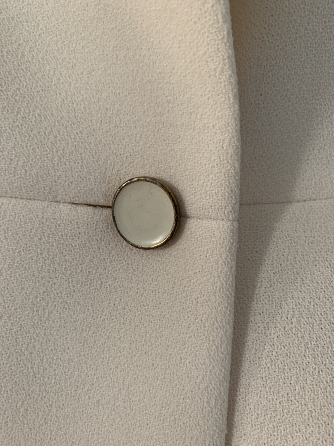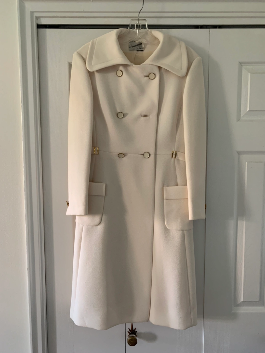 This off white number is structured style to the max. It’s 60’s flair is perfect for a smaller frame. There’s no size listed but likely be a size small. It’s in great condition but please note it is missing a button on the front. Wear it open or closed, but you’ll definitely look chic this Fall. Colour: Off White or Cream Size: Small Brand: Fashionwise Pick up only at Spadina and Lonsdale, Toronto.