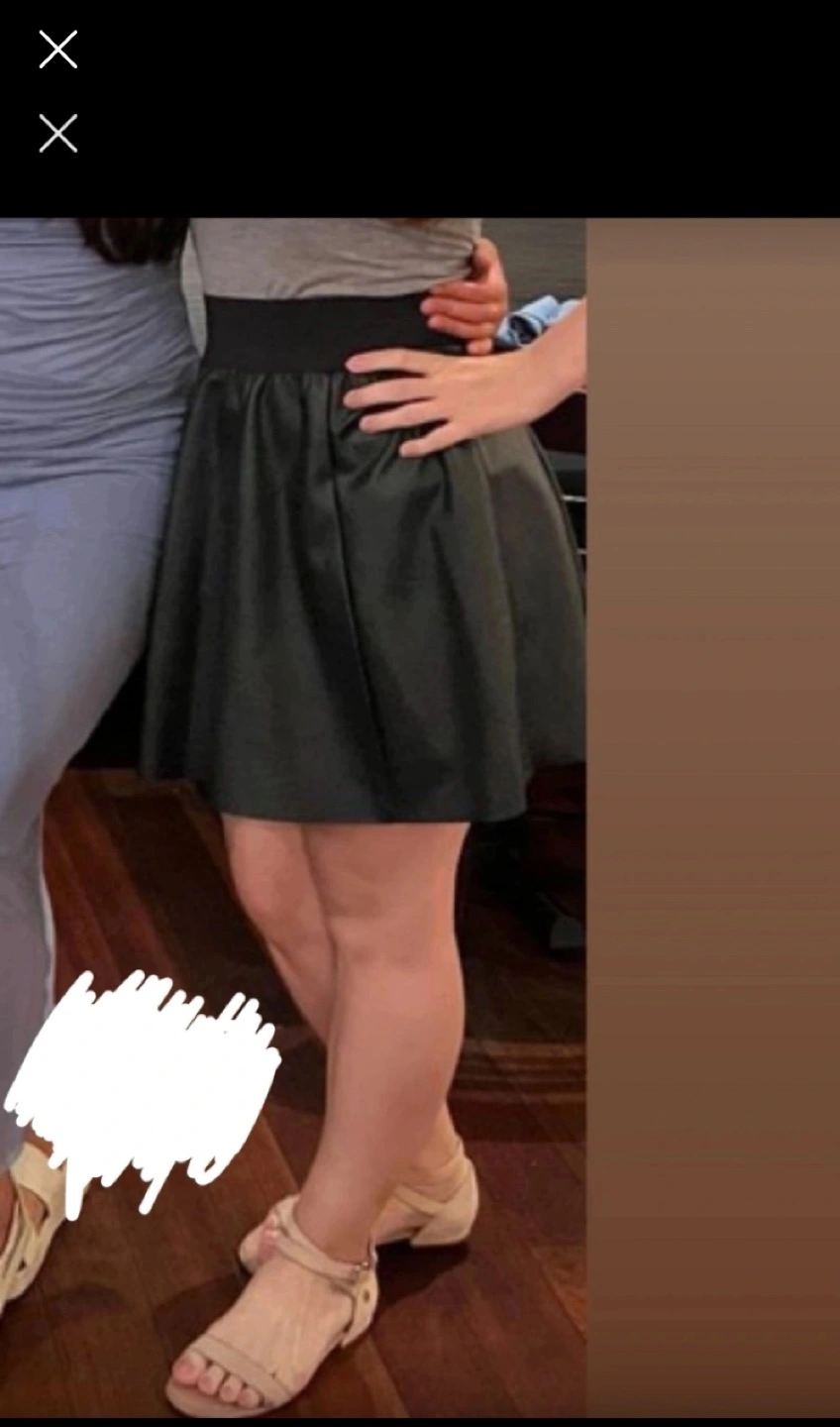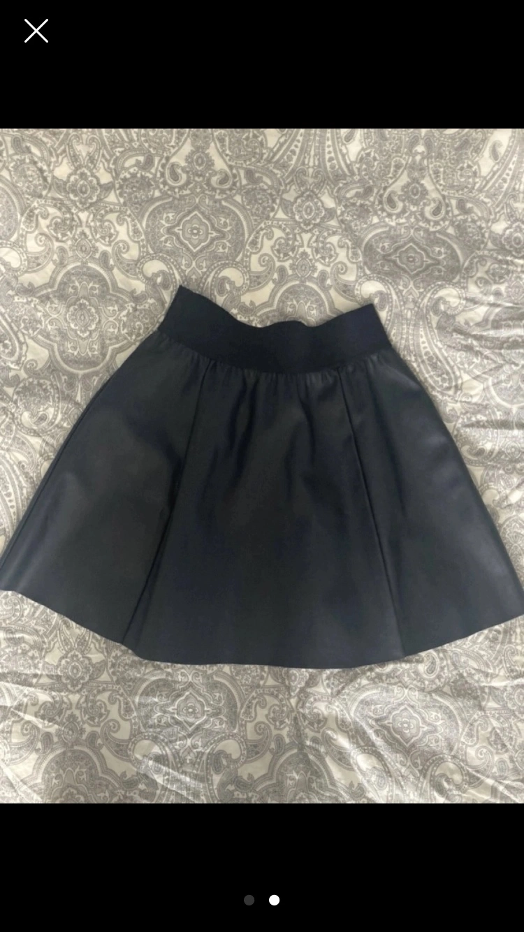 Barely worn black faux leather skirt with an elastic waistband and is nice and flowy I’m usually a S-M. Also holds super well with elastic but is also VERY stretchy if you’re either of those sizes. Brand : terranova XS but I’m usually an M in pants with an athletic build. I’m 5’3 Pickup Hurontario and Dundas in Mississauga. Cash only