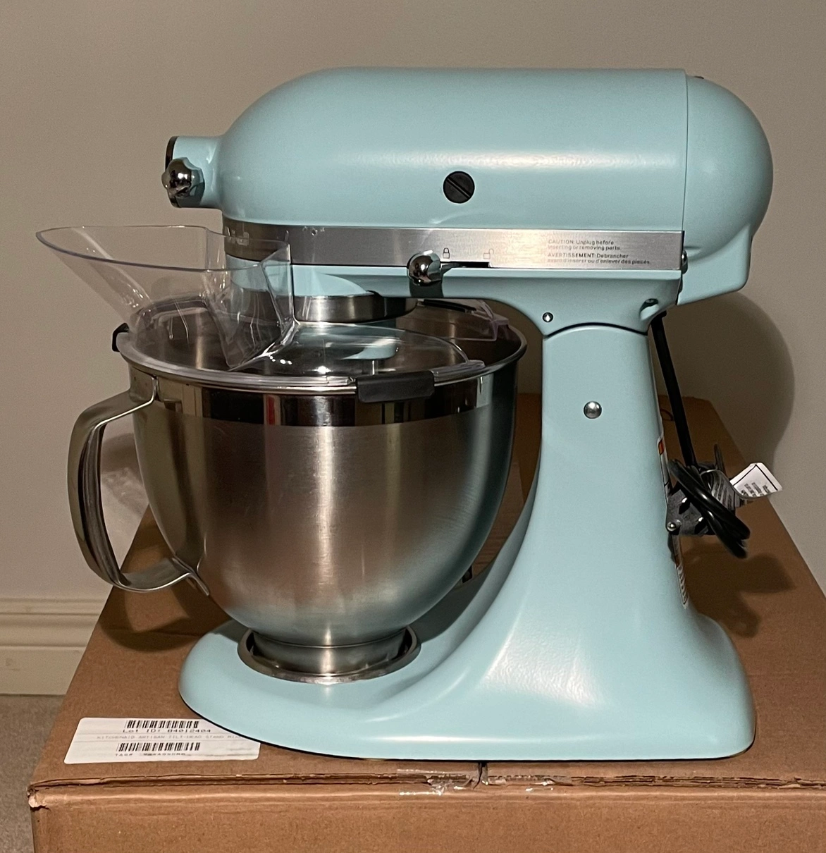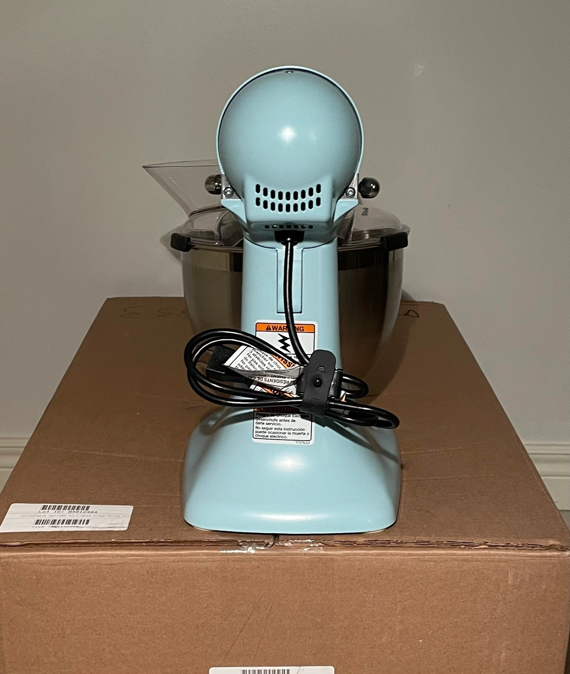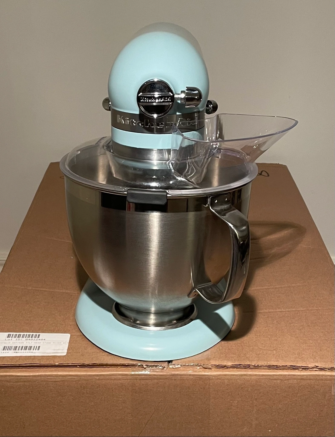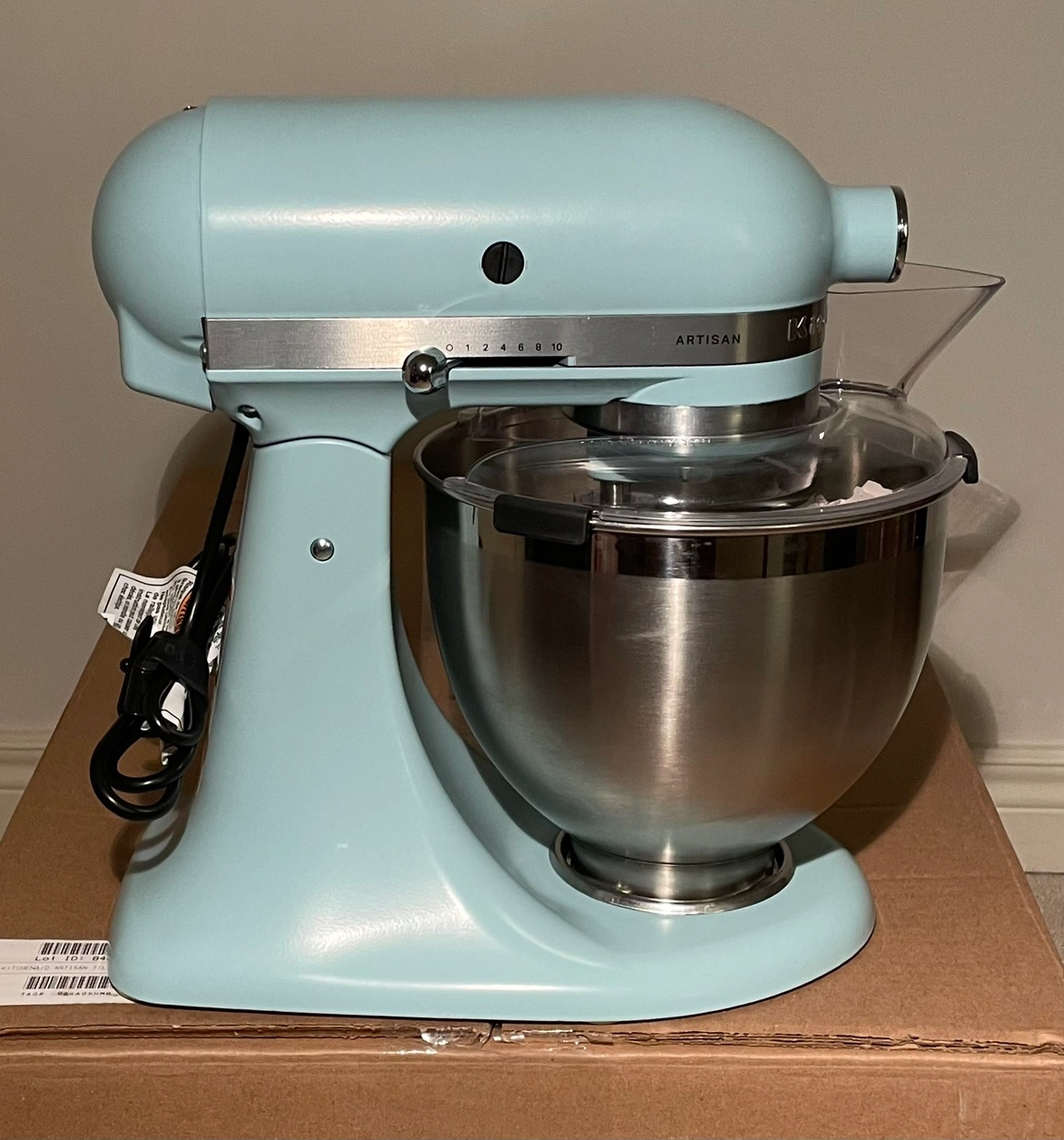 NEW - Store Display! MSRP $544.99 + tax BEST OFFER or FIRST COME! (Offers below $250 will not get a response) Items Included: KitchenAid KSM195PSMI Artisan Tilt-Head Stand Mixer 5Qt - 325-Watt - Mineral Water Blue Manuals Wire Whip Pouring shield 5qt Bowl Items not included: 3.5 Bowl Subtle Silver Coated Dough Hook Subtle Silver Coated Flex Edge Beater Subtle Silver Coated Pastry Beater Unit has been tested and is fully functional. Unit is in excellent condition, minor scuffs. OEM box not included. Pay via Cash, Credit, e-transfer, crypto, Apple Pay, & MORE! **Delivery and Shipping is possible depending on location and small fee. Delivery and shipping fees must be paid in advance by you regardless of purchase** https://www.kitchenaid.ca/en_ca/countertop-appliances/stand-mixers/tilt-head-stand-mixers/p.artisan-series-tilt-head-stand-mixer-with-premium-accessory-pack.ksm195psmi.html Caveat emptor It is the duty of the buyer to inspect, test, and agree to our products prior to completing transaction. You accept full responsibility of the product the second money exchanges hands even if you choose to not test and inspect. If the unit is factory sealed and you decide to break the seal to inspect and test, you agree to complete the sale as long as the product inside is in adequate condition.