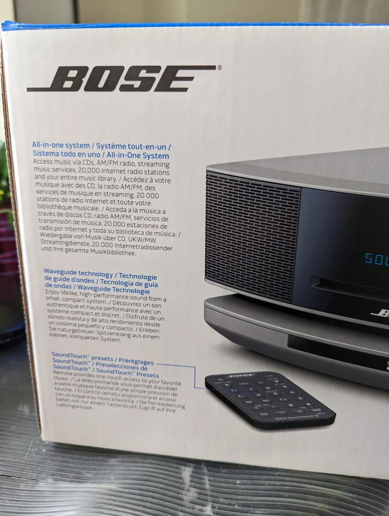 Bose Sound System with radio and single CD player. This is the Series IV with the platform base. Remote control, touch activation and many other features. Comes in original packaging. Reasonable offers only and only through the app .