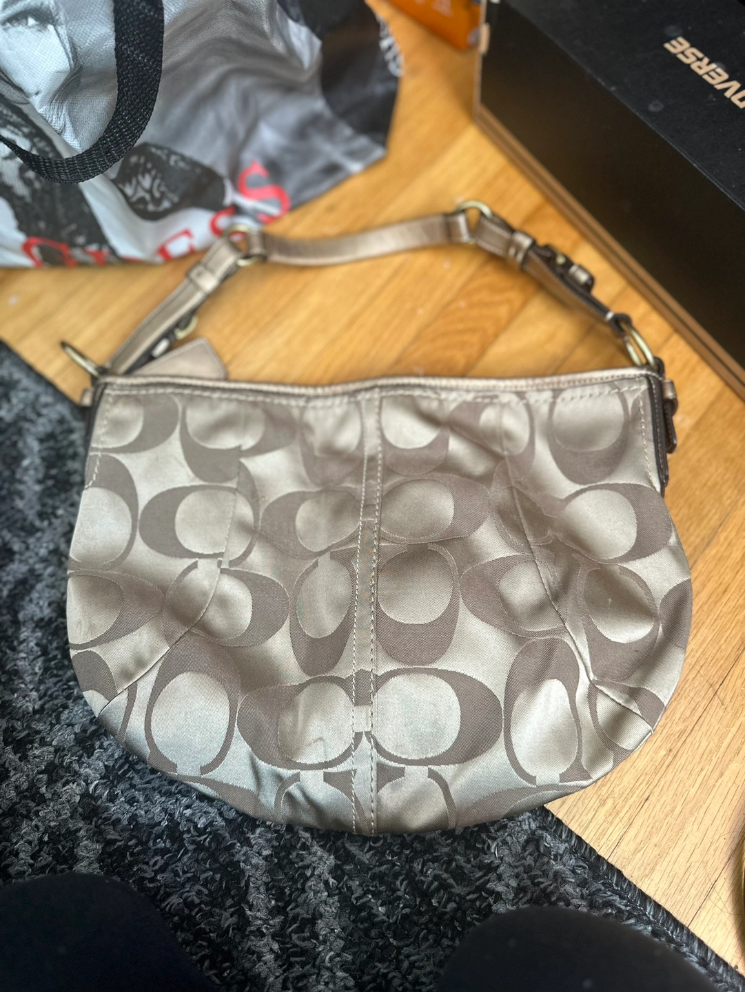 This is a gently used Coach handbag. It has a beautiful, classic design and is in excellent condition. The bag is made of a durable, high-quality material, and it is the perfect size for everyday use. It comes with a shoulder strap and a zipper closure. This is a perfect handbag for anyone looking for a stylish and functional piece.