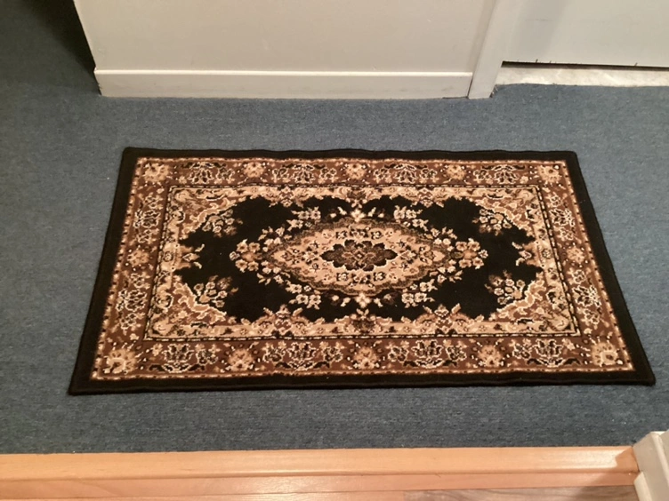 Black and beige rug with intricate pattern. Excellent condition good quality Rug $25