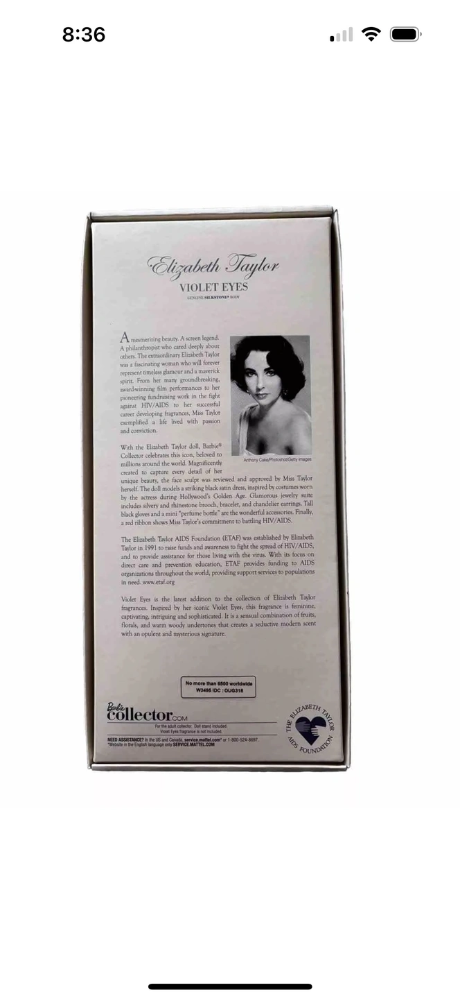 Elizabeth Taylor forever represents timeless glamour and a maverick spirit. Crafted in magnificent detail, the doll's face sculpt was reviewed and approved by Elizabeth Taylor herself. She wears a timeless satin dress with matching opera gloves and pumps, rhinestone brooch, bracelet and earrings. Also includes sunglasses and a mini "perfume" bottle. A tiny red ribbon near her shoulder represents her commitment to battling HIV/AIDS. New in the box, was never removed. For more details please see the photos. Comes from a clean and non smoking household. Gold label - only 6500 were made worldwide. Selling this item on multiple platforms. This is the lowest price for it.
