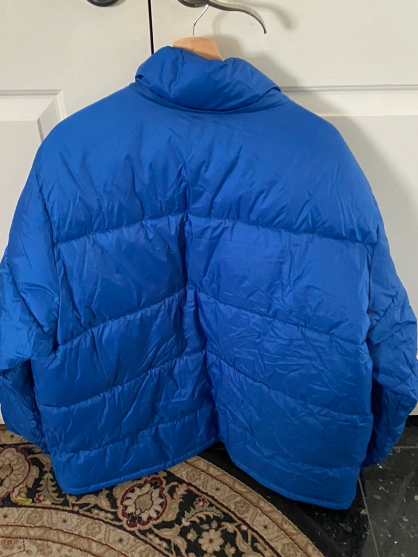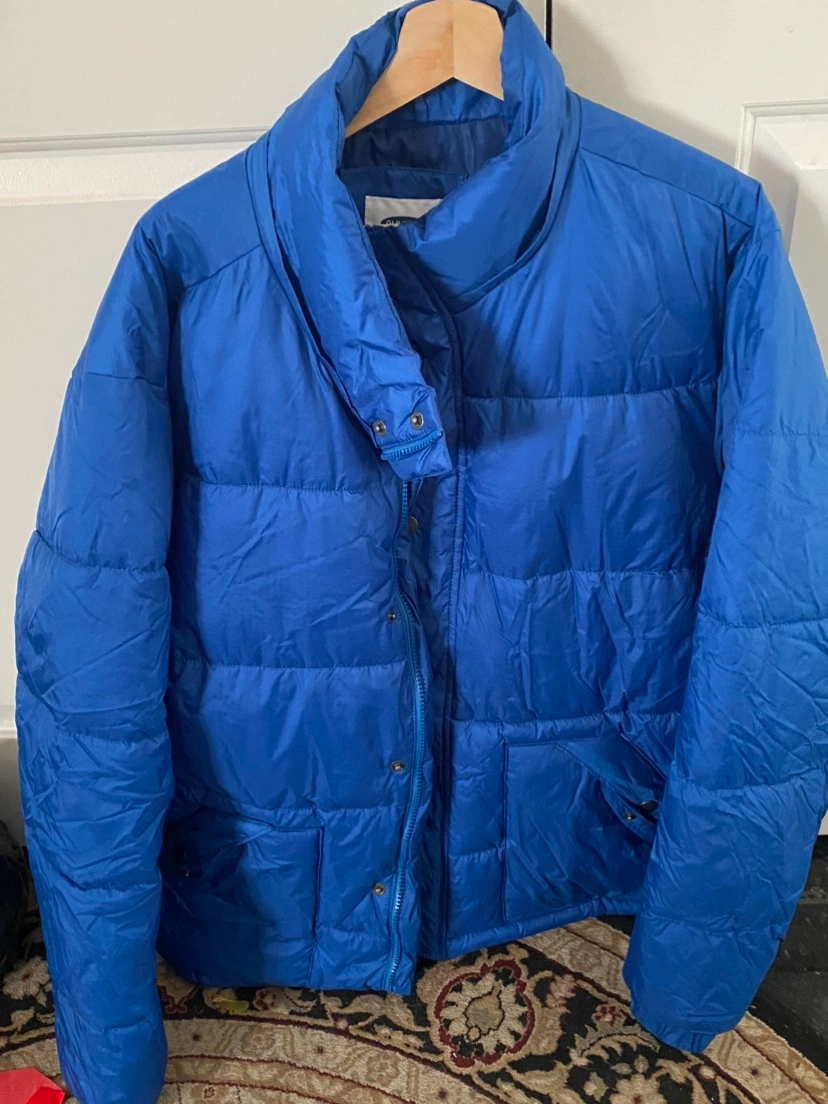 Men's XXL quilted winter puffer jacket in a blue colour. Old Navy. It has a zipper closure and two pockets. Like new. Was too big so hardly ever warn. No hood