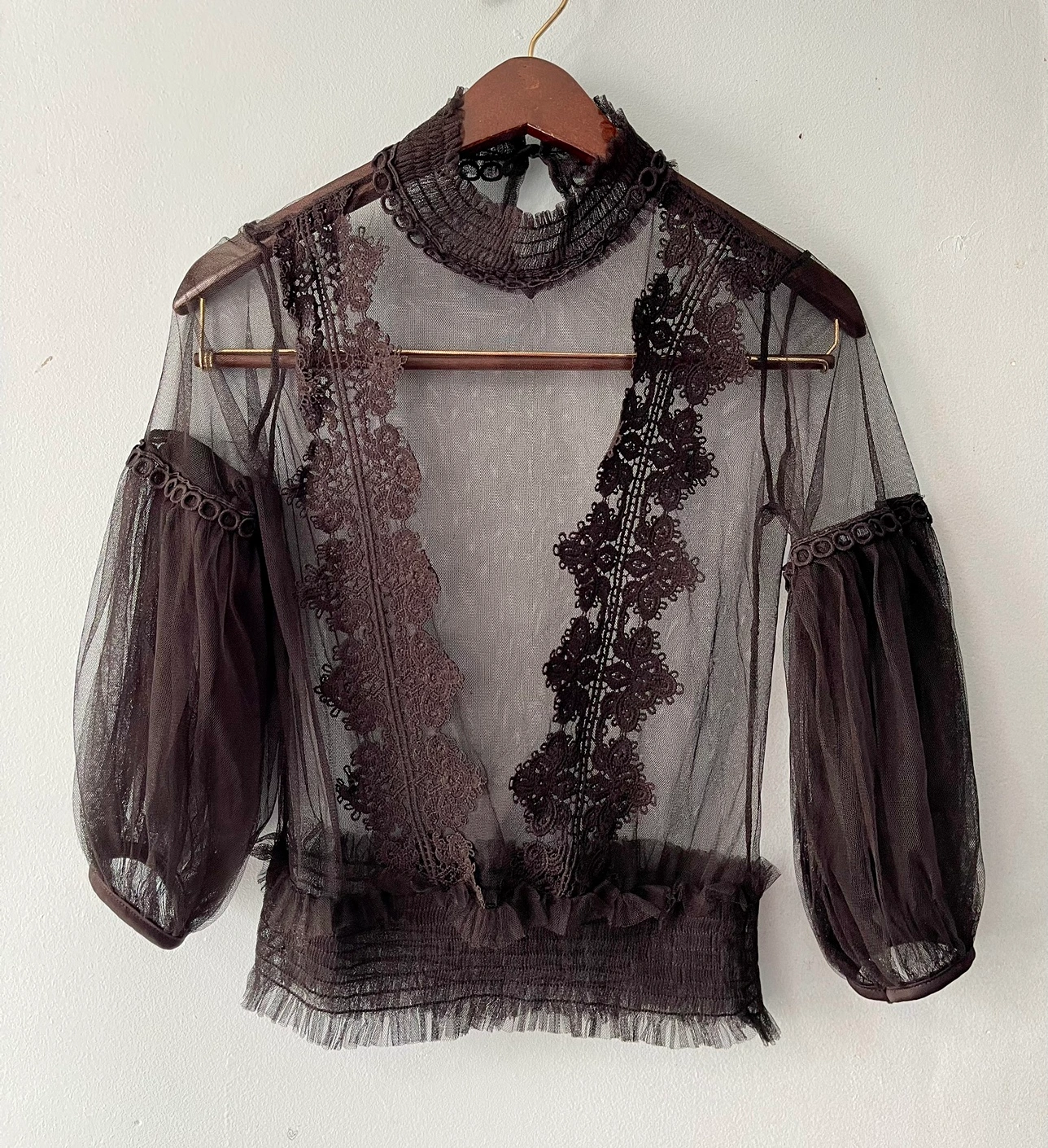 Complementing when worn❤️ Very pretty in actual. A beautiful black sheer top with lace detail. It has a mock neck, 3/4 sleeves. It is lightweight and perfect for layering.