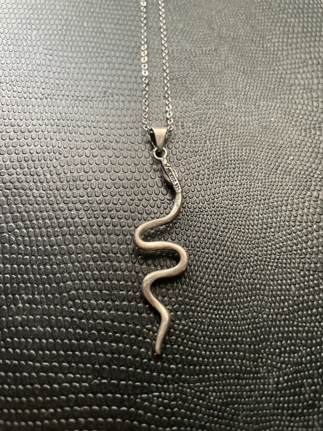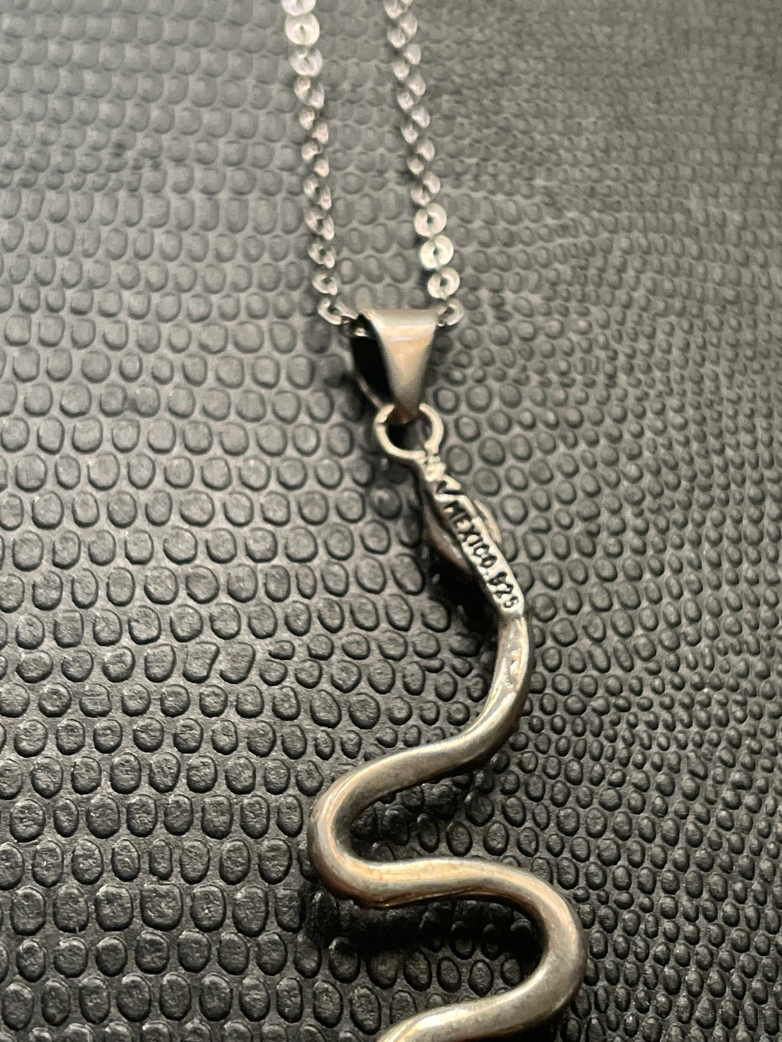 A silver snake necklace with a chain. The necklace is marked "Mexico 925". Brand new never been worn🤍