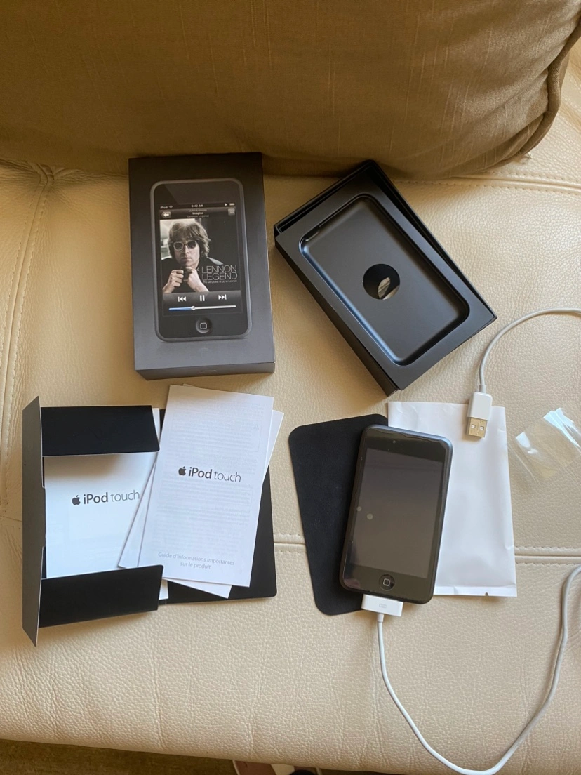 Comes with original packaging (coveted John Lennon box) and accessories, including the charging cable, and instruction manual. In excellent working order. Just a few very minor scratches on the back of the iPod. The screen has a protector film which can be removed. See all details in the attached photos. From a pet and smoke free home. Pickup only in the St. Lawrence market area of Downtown Toronto. Cash only.