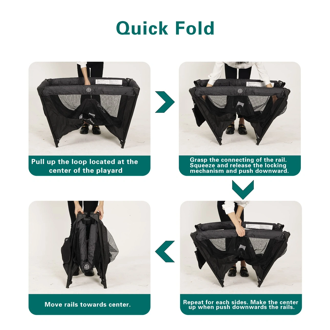 Portable Crib Baby Playpen with Mattress and Storage Bag No tools required for assembly or folding. Weighing just 17.6 lbs., you can hold it with just one hand. Takes up minimal space when folded (26.18"* 7.48"*7.48") so you can bring it along when travelling or visiting your friends. Mesh Design with Soft Mattress The weight limit of this playpen is 33 lbs. Item dimensions: 100 x 70 x 65 Centimetres Floor area 1087.44 Square Inches Pick up is in Ajax, close to harwood bayly intersection.