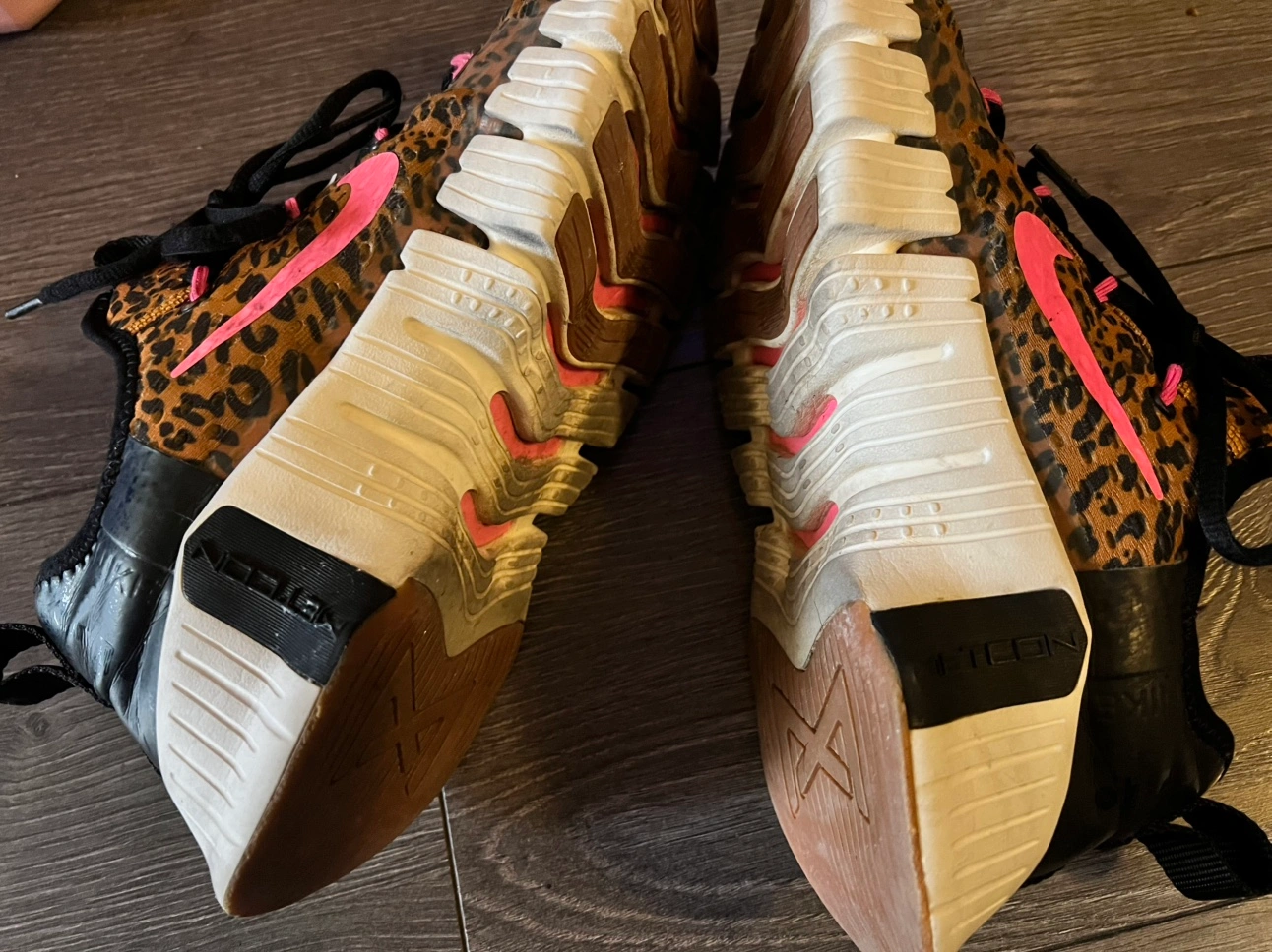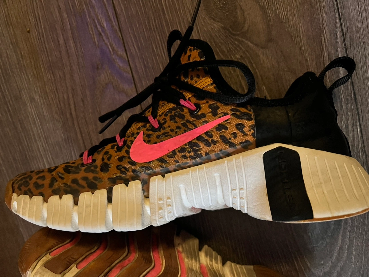 These are pre-loved and in good condition. They are a size 9 (US Women's). They are in leopard print and have a pink swoosh. They have a white midsole and black outsole. They are very comfortable and would be great for any workout! Just have a lil damage in both sides. So lowering the price.