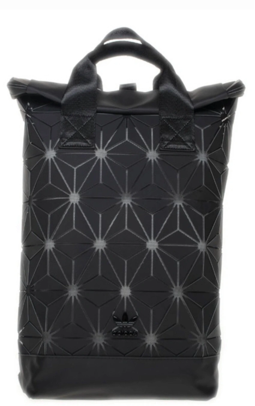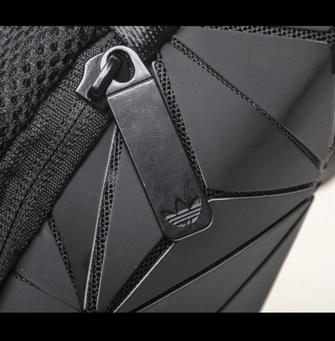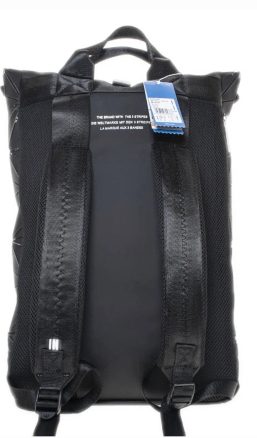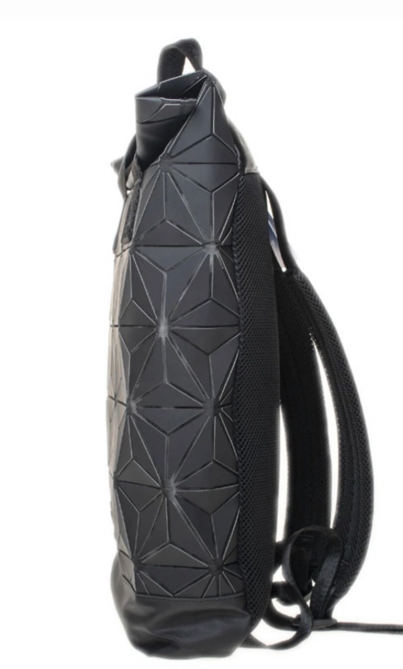 Black geometric(issey miyake pattern style pattern) backpack with zipper closure and adjustable straps. Brand new