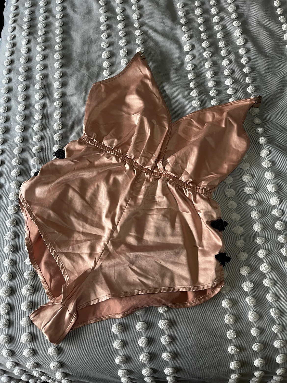 A cute and flirty pink satin romper. Perfect for a night in or a night out. This is a great piece for any wardrobe.