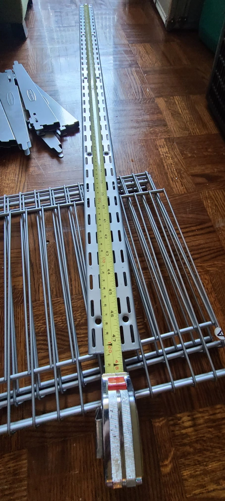 SERIOUS INQUIRIES ONLY If interested message with day and time you want to comby. need gone asap 1st picture is same item with 2 shelves (example) This Rubbermaid shelf system includes 2 long rails, 3 wire shelf and 6 brackets. The long rails measure 47.5 inches in length and the shelves measure 26 width x 11 inches depth. The brackets have sliding lock to secure shelves and are used for connecting the long and short rails to create a shelf unit. *needs 6 screws not provided* pick up by Gerrard and River St address given once meetup is set.