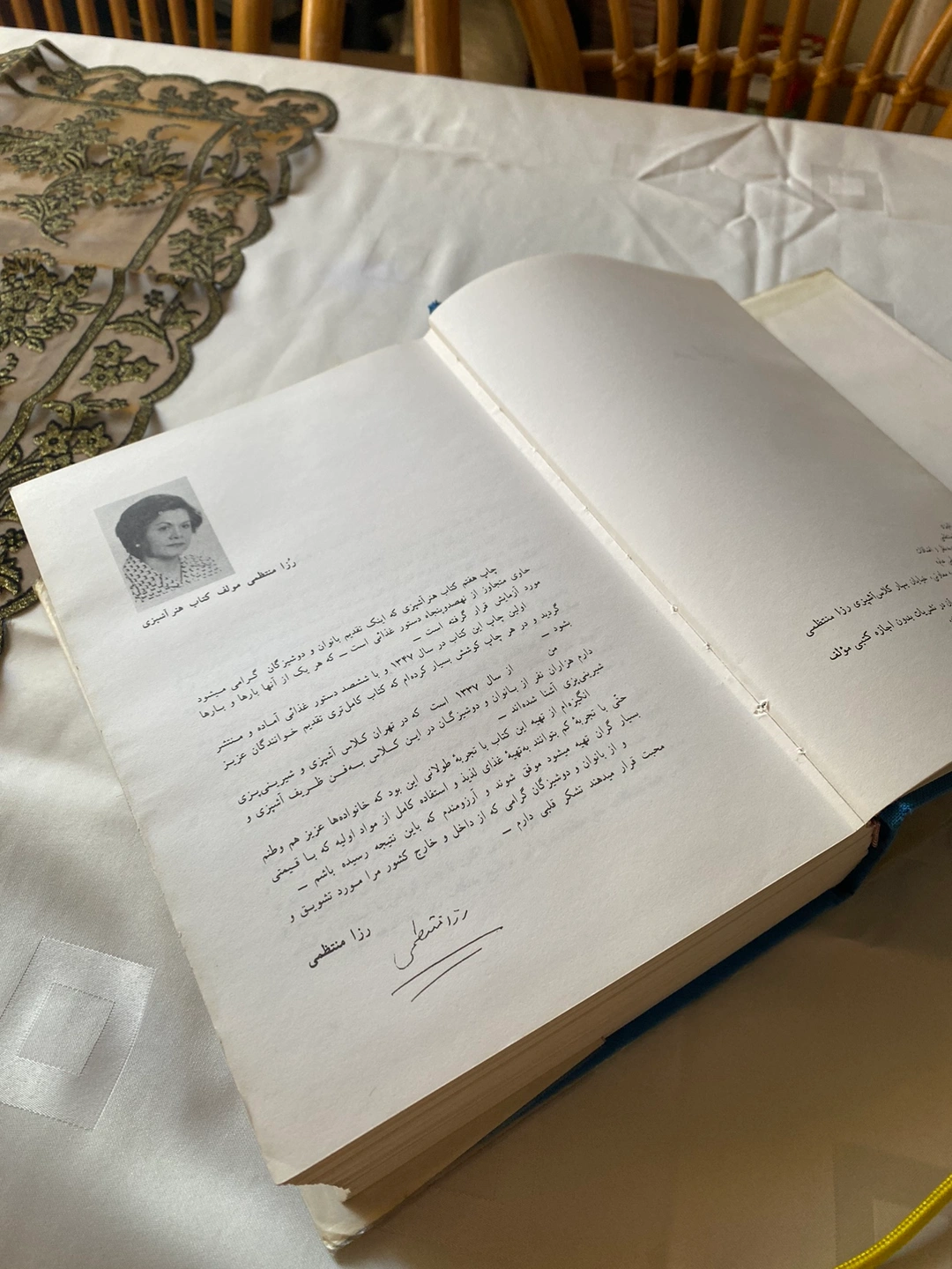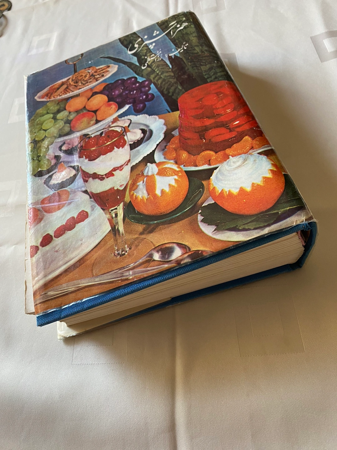 A vintage hardcover cookbook with a photo of Princess Grace on the inside cover.